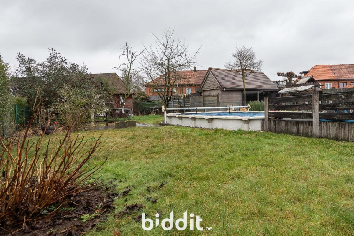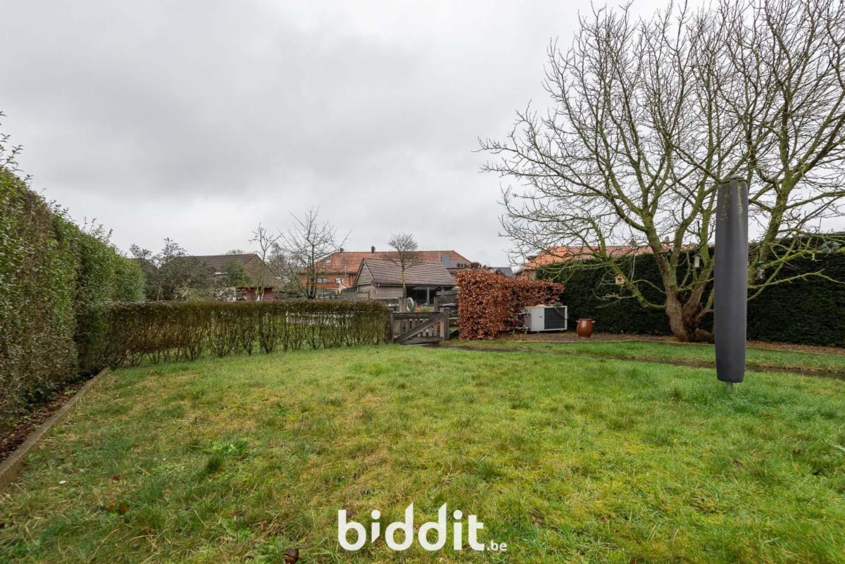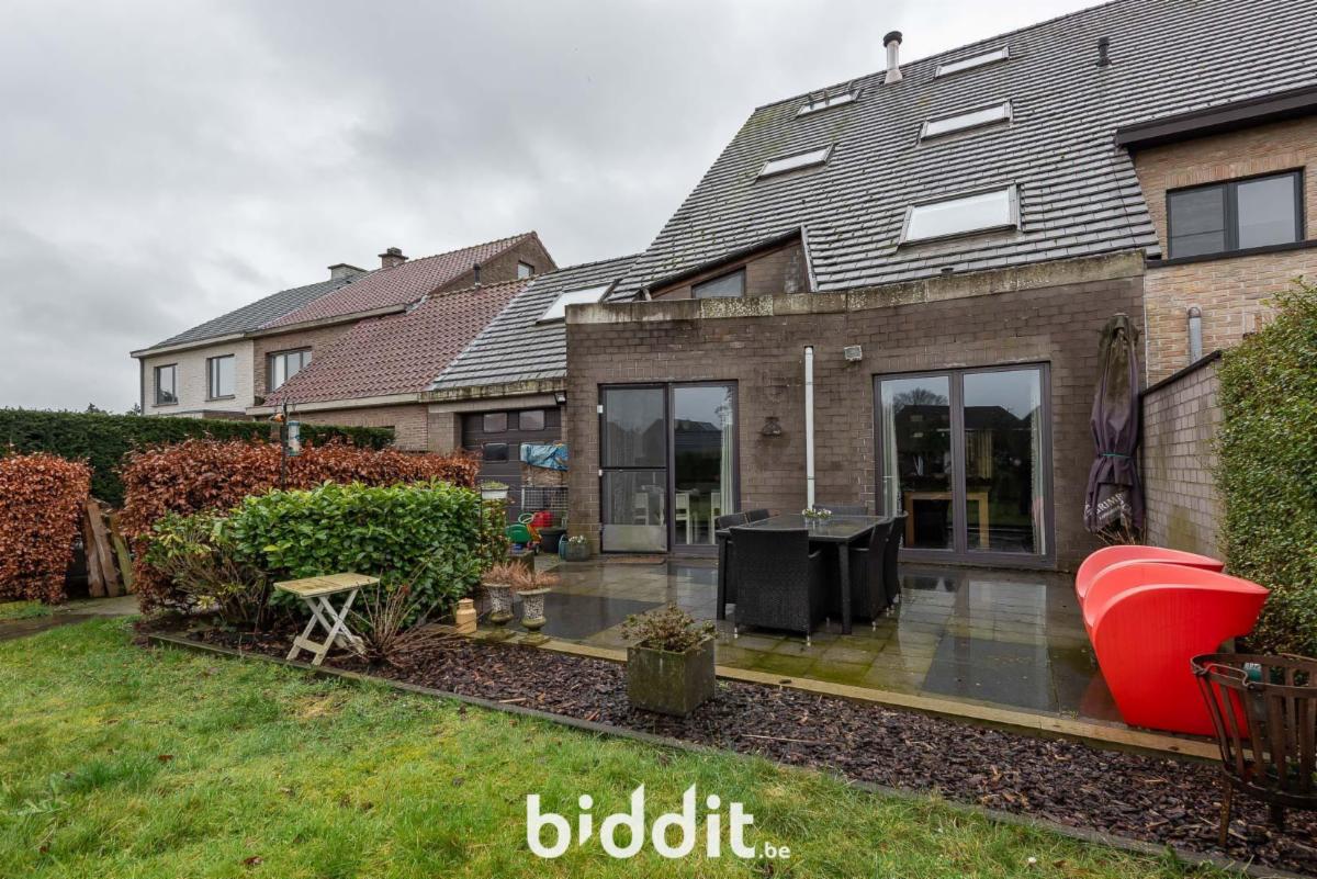 De woning beschikt over een garage met mogelijkheid voor een wasmachine en droogkast, en een grote tuin met terras.