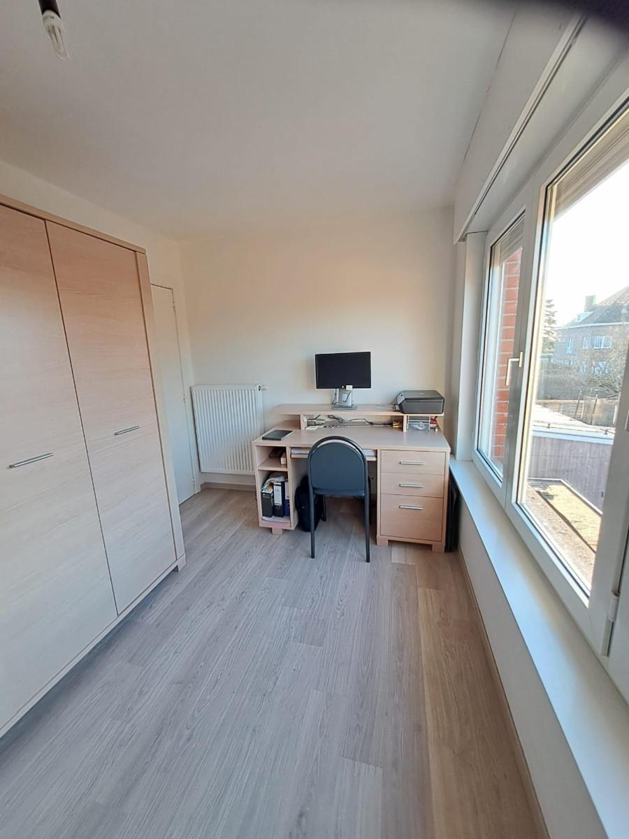 Deze instapklare rijwoning is gelegen in het stadscentrum van Tielt en omvat op de gelijkvloerse verdieping een inkomhal (met trap naar de eerste verdieping), een toilet, een woon- en eetkamer, een keuken en een garage met wasruimte. Via de trap bereikt u de eerste verdieping waar een nachtgang toegang geeft tot vier slaapkamers en een badkamer (voorzien van enkele lavabo, wc en douche). De woning beschikt eveneens over een zolder (bereikbaar via een schuiftrap in de nachtgang) en over een kelder.