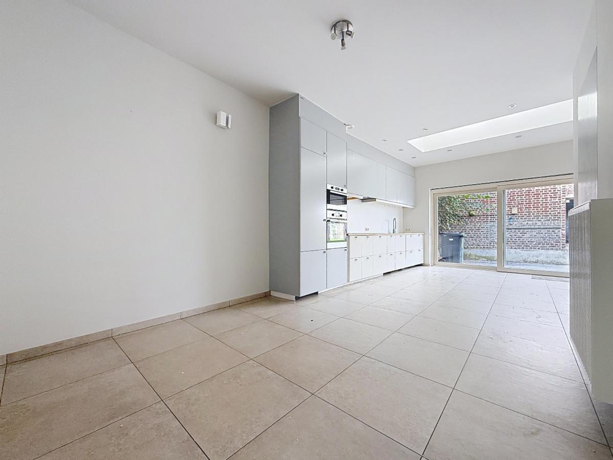 Bij binnenkomst via een lichtrijke inkomhal treffen we een apart gastentoilet aan. Daarna volgt een ruime woonkamer met verhoog. Aansluitend hierop volgt een volledig uitgeruste keuken die u rechtstreeks toegang tot de tuin geeft, alsook een ruime berging.