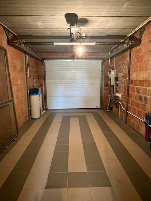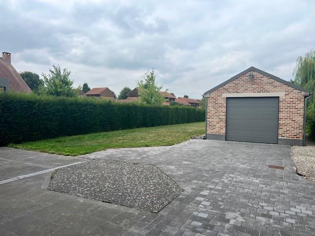 Gelijkvloers: inkomhal met toilet, lichte en ruime eetkamer die aansluit op de lichtrijke living. Moderne open keuken, volledig uitgerust, die naadloos overgaat in de woonkamer met uitzicht op de tuin. Naast de keuken bevindt zich een berging met garage.