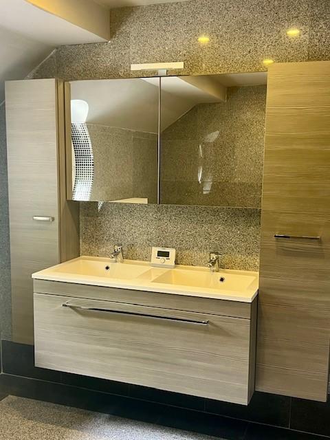 Eerste verdieping: drie slaapkamers, badkamer met dubbele lavabo, bad en douche, apart toilet en dressing.