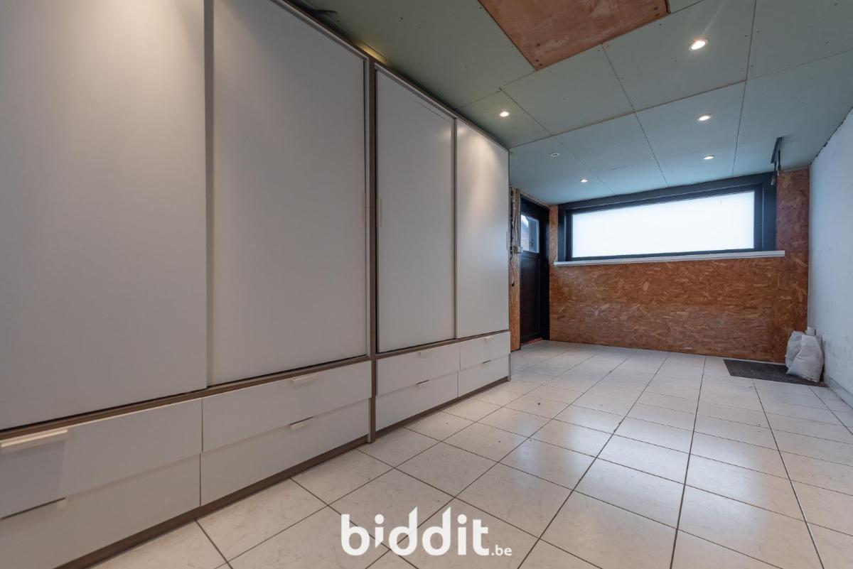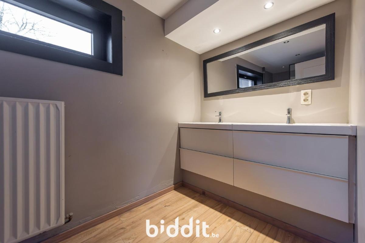 INDELING: Gelijkvloers: inkom, 2 bergingsruimten (waarvan 1 te gebruiken als bureau), keuken, apart toilet, badkamer met 2 lavabo's en douche, living, 2e apart toilet, polyvalente ruimte van 16 m² met aparte ingang; 1e Verdieping: 3 slaapkamers.
