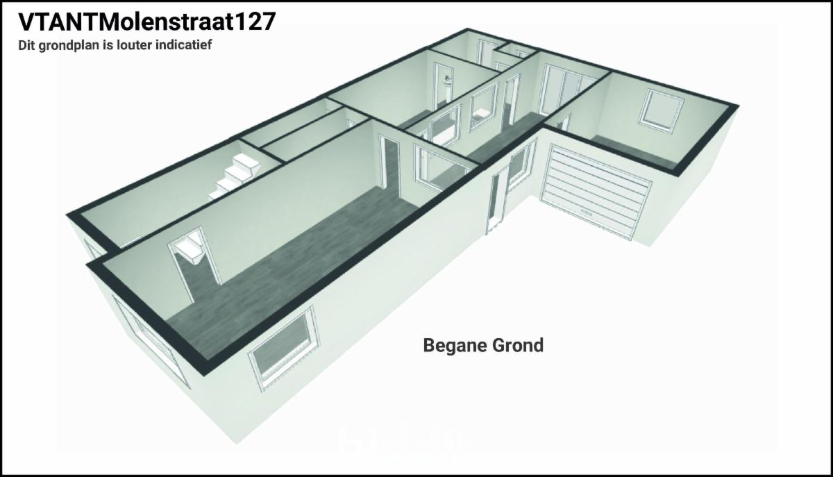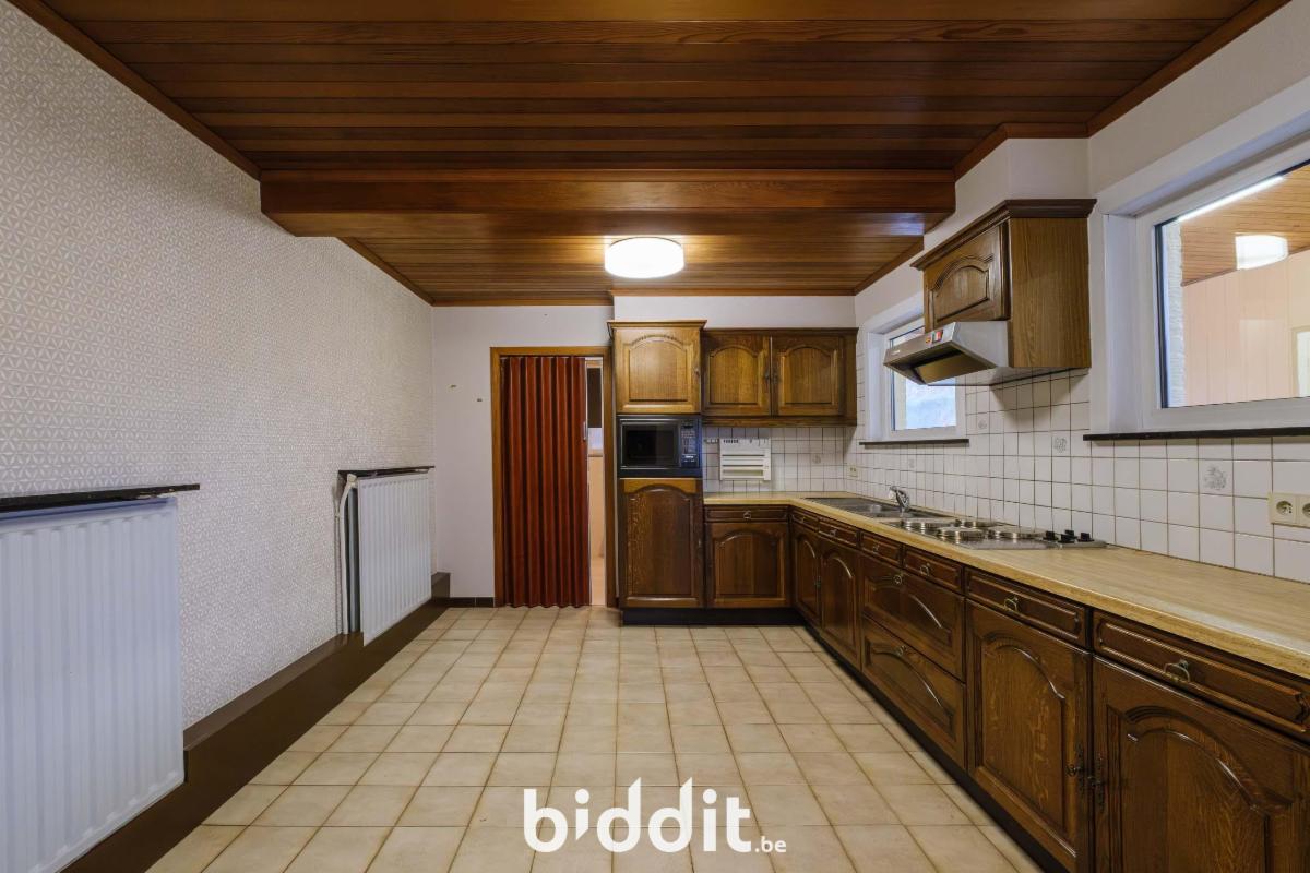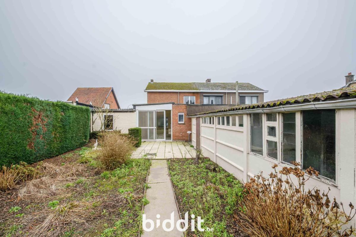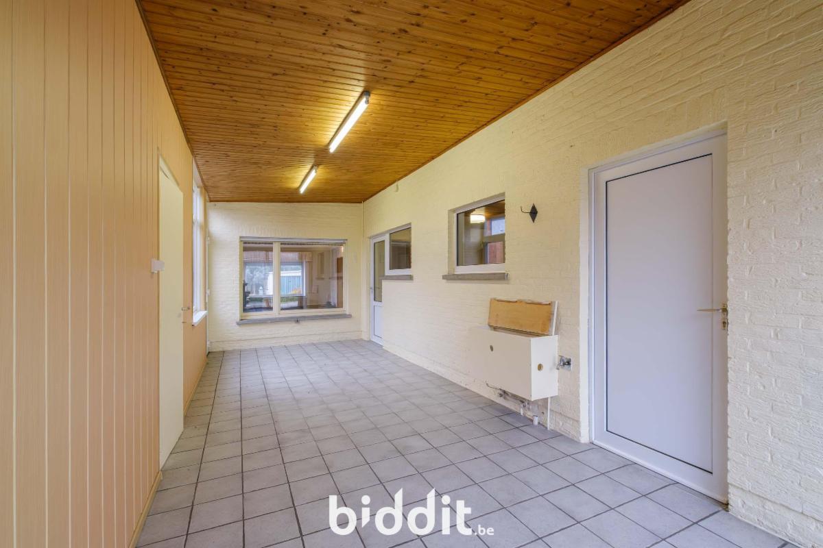 - gelijkvloers: inkom, woonkamer, keuken, bergruimte, badkamer (vernieuwd met lavabo, toilet en inloopdouche), veranda (nieuwe ramen), inpandige garage;
