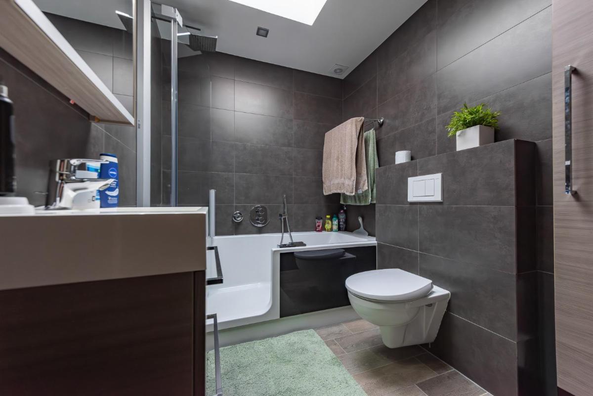 Daarnaast heb je een dressing en badkamer. De badkamer is uitgerust met bad/douche, lavabo en hangtoilet.