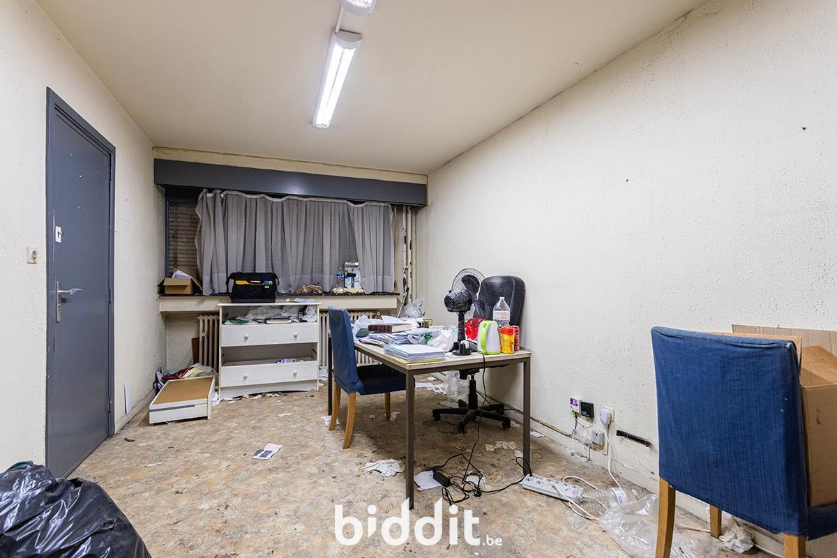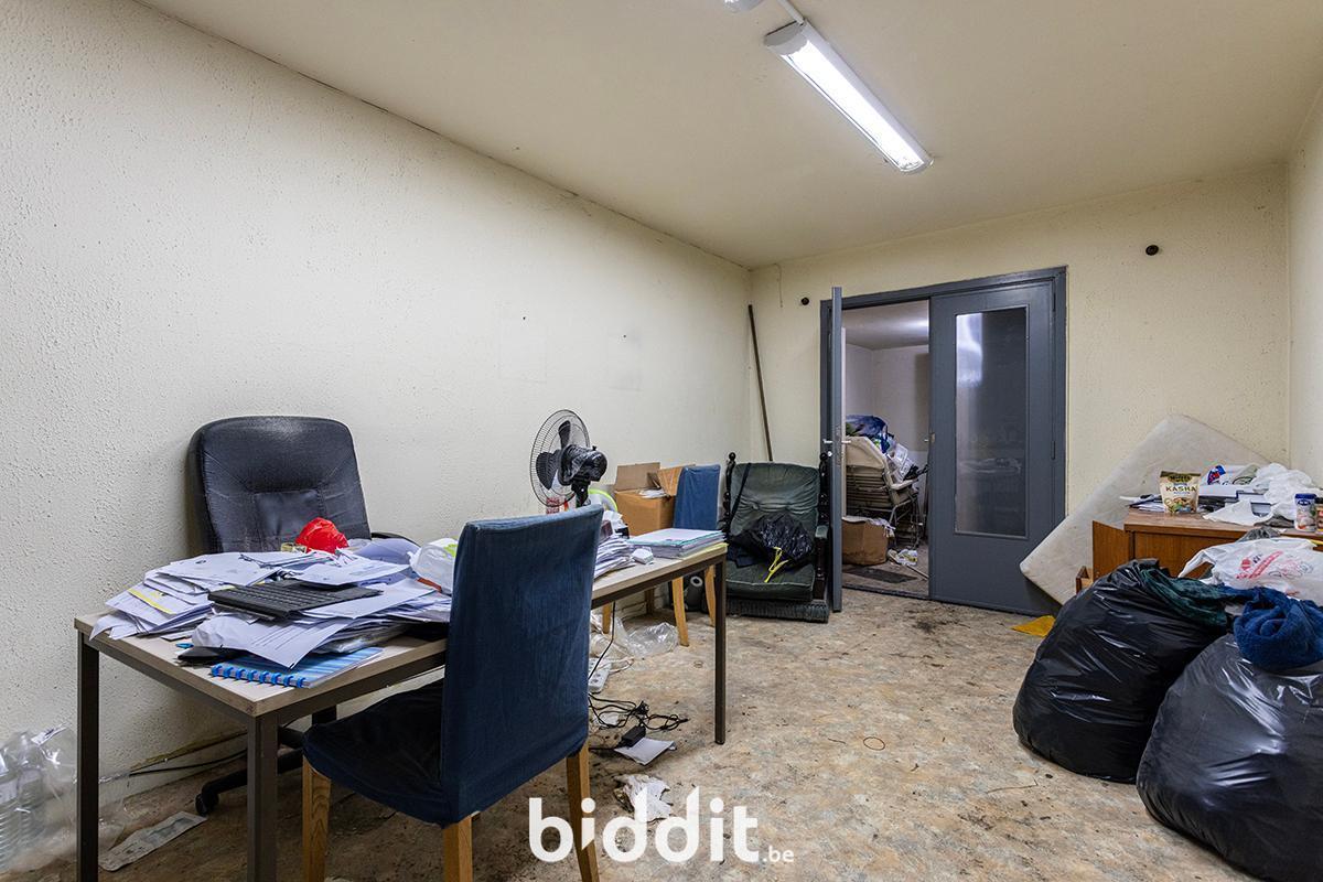 Op de gelijkvloerse verdieping: inkomhal met wc, bureel vooraan met deur naar de gang, wachtplaats, bureel achteraan met keuken, badkamer met tuin.