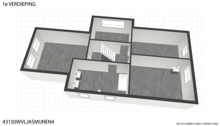Verdieping: nachthal, 4 slaapkamers, badkamer met ligbad, dubbele lavabo en toilet, bijkomende bureau.
