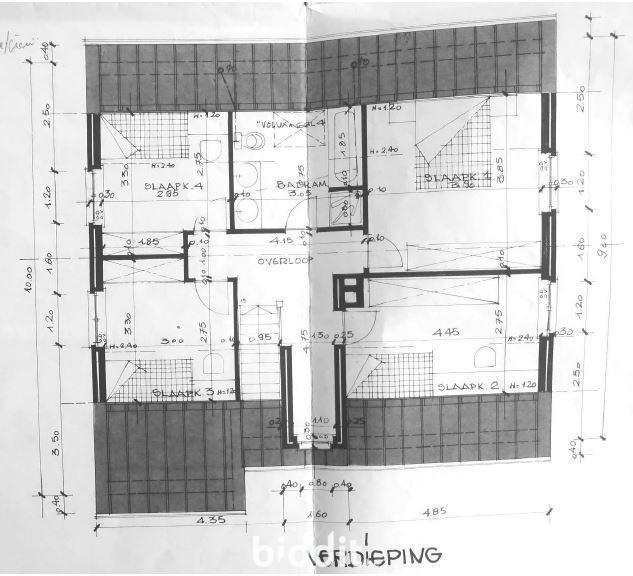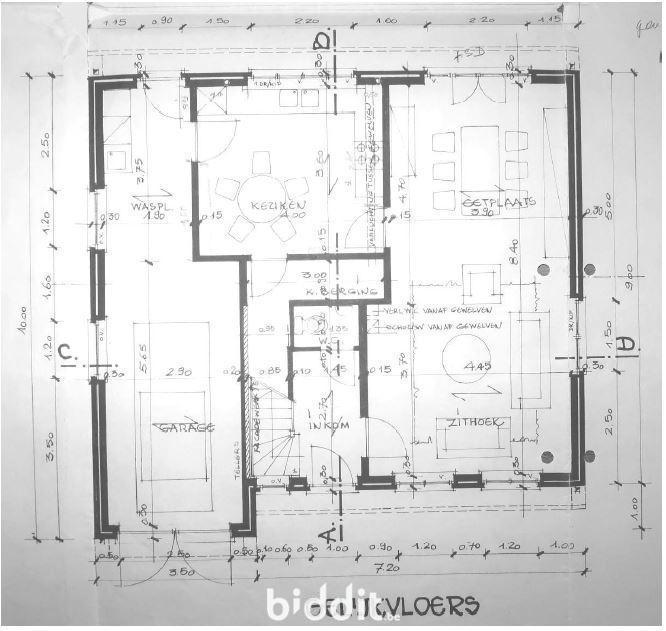 Op het gelijkvloers vindt u de inkom met traphal, vestiaire en gastentoilet, living en eetplaats, keuken met ontbijtruimte, voorraadberging onder de trap, inpandige garage met wasplaats. Daarnaast is er een ruime tuin. Op de dakverdieping vindt u een traphal met overloop, badkamer met toilet en vier slaapkamers.