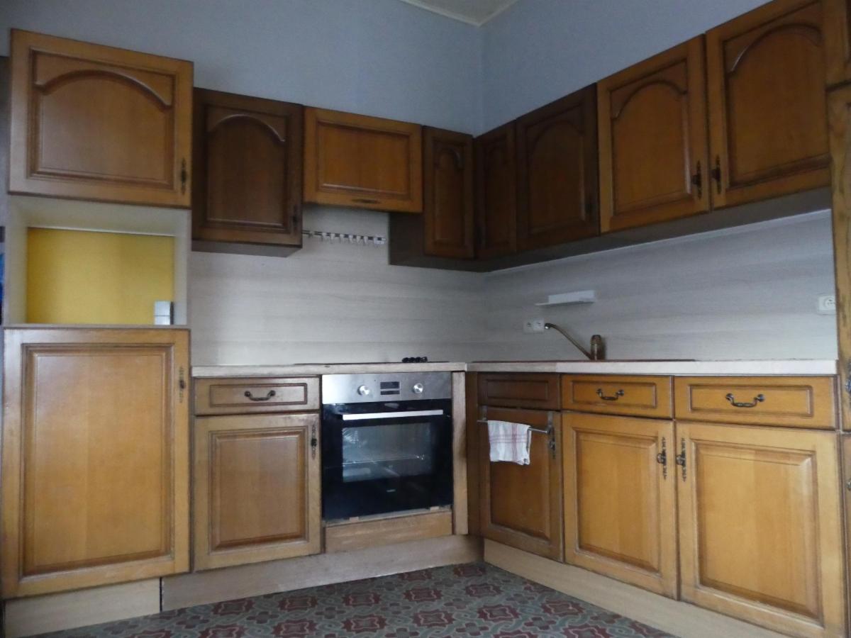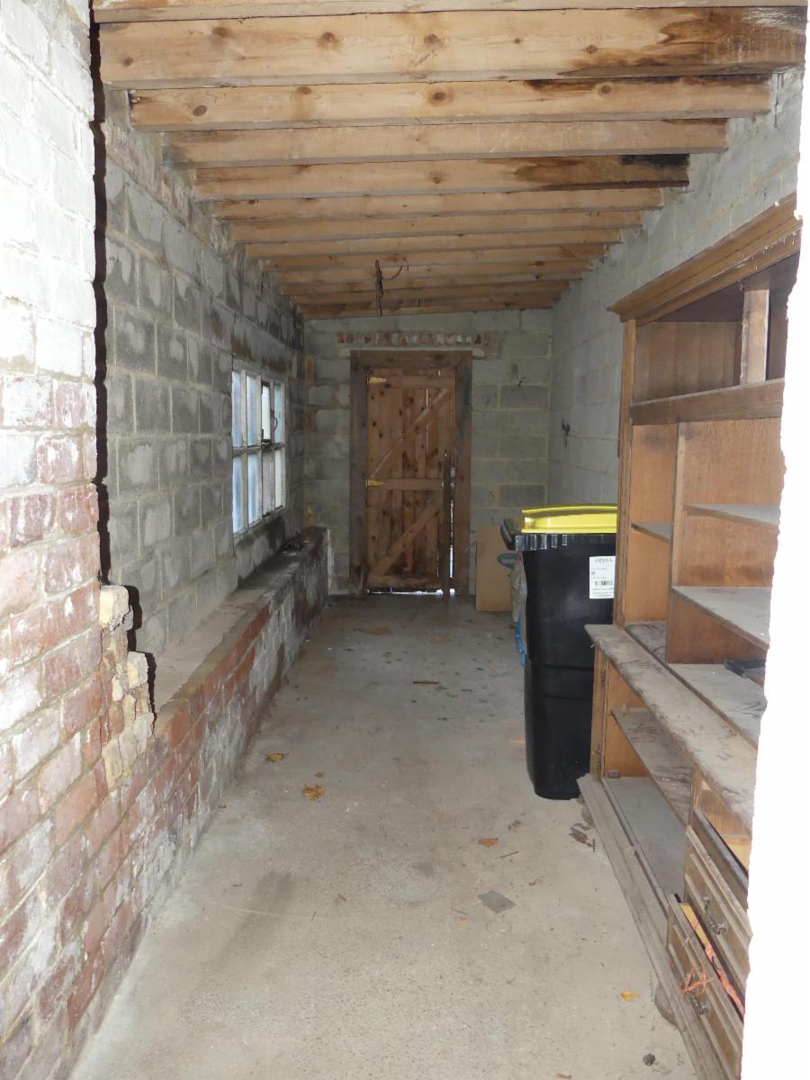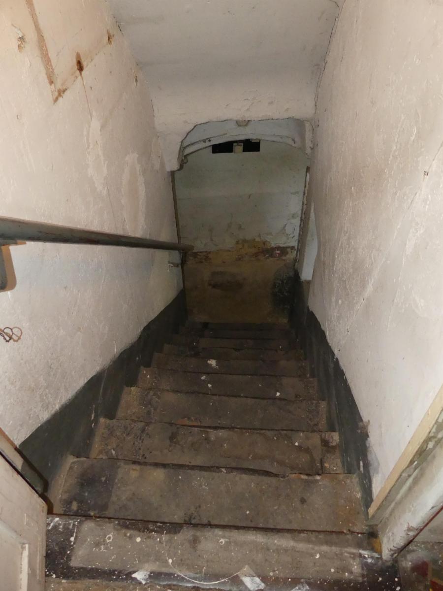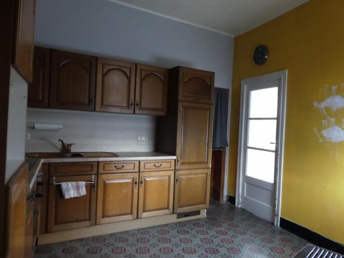 Rez : living, cuisine semi-équipée, salle de douche, 2 caves, cour, remise, garage, jardin