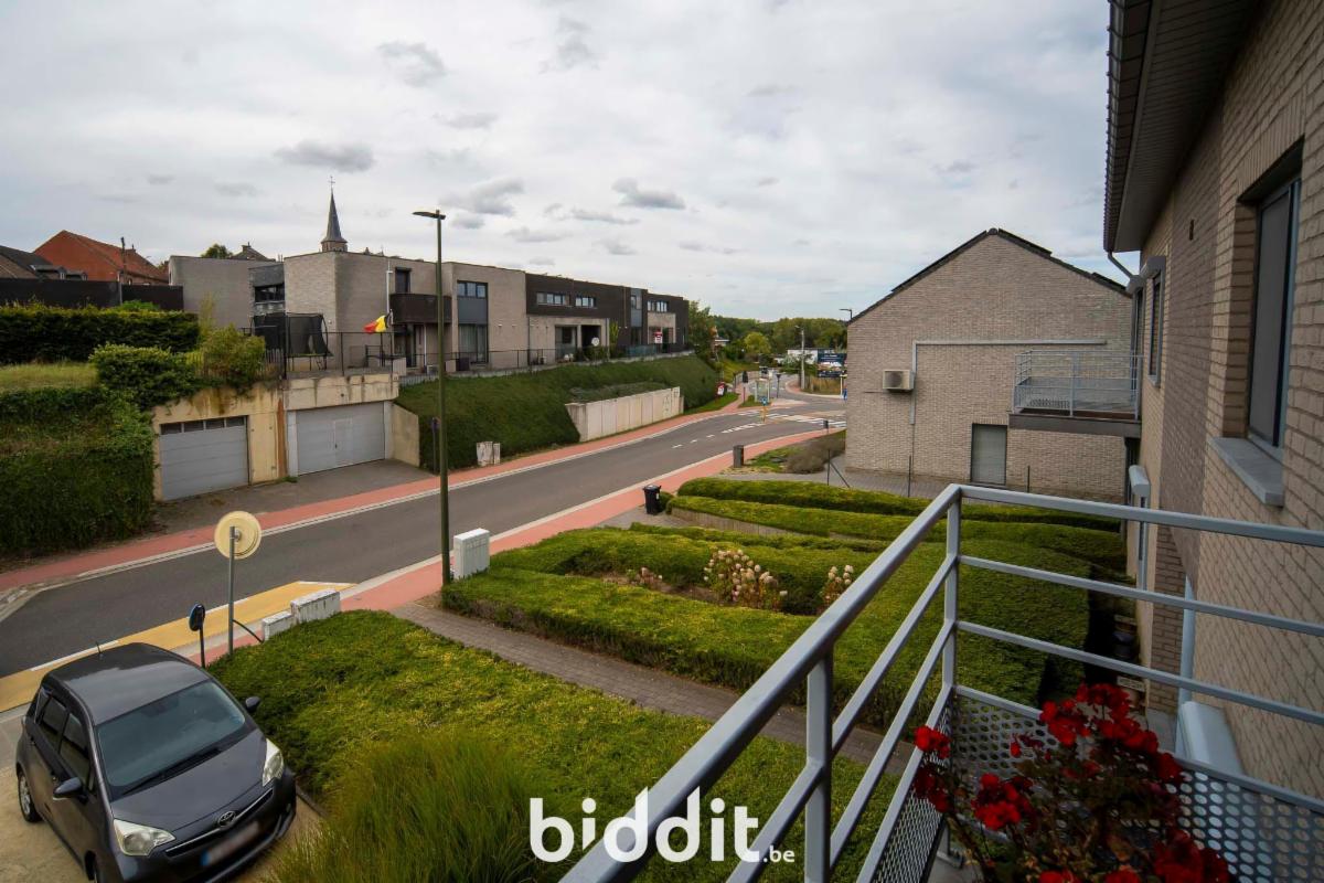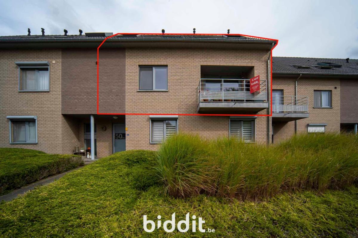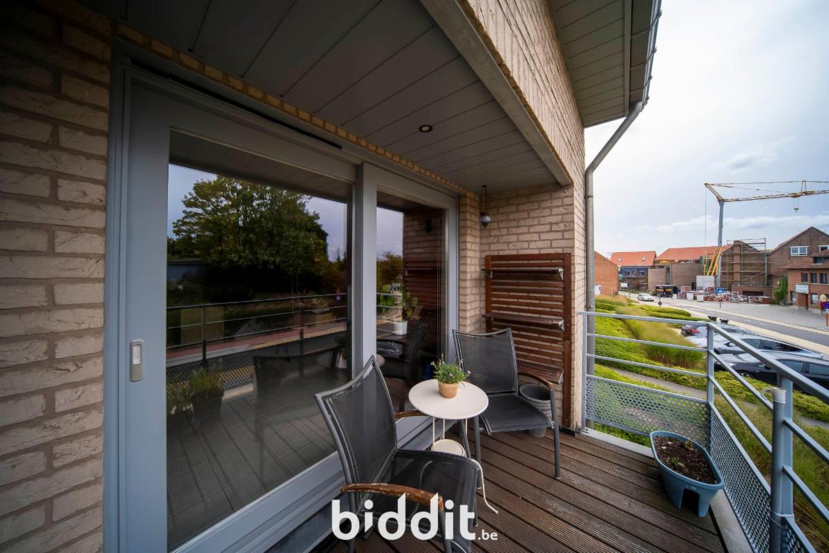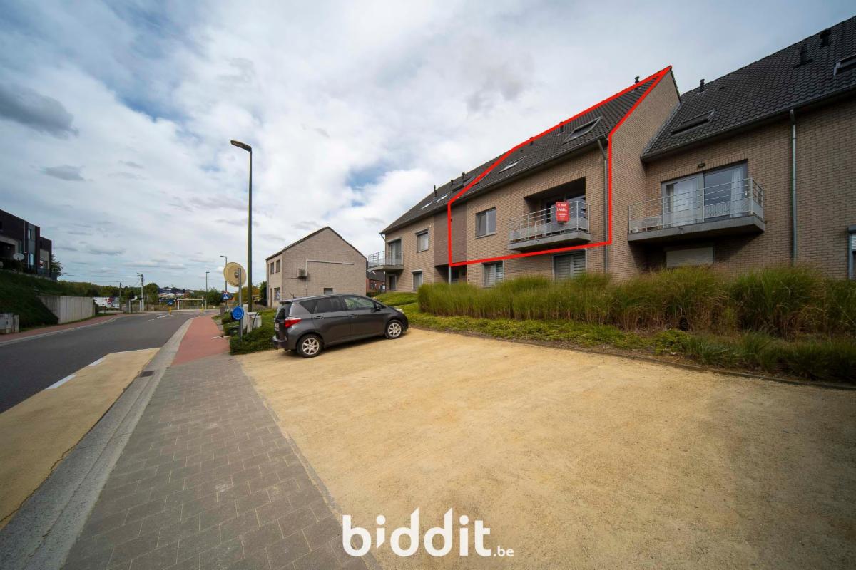 - op de 1e verdieping : inkom met wc, living met terras en open keuken (met 4 elektrische kookplaten, gootsteen, vaatwasser, oven en frigo), opbergruimte en parlofoon;