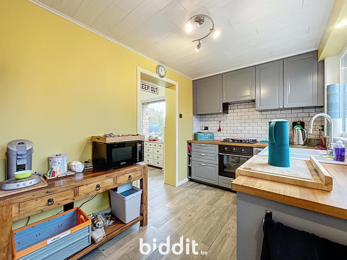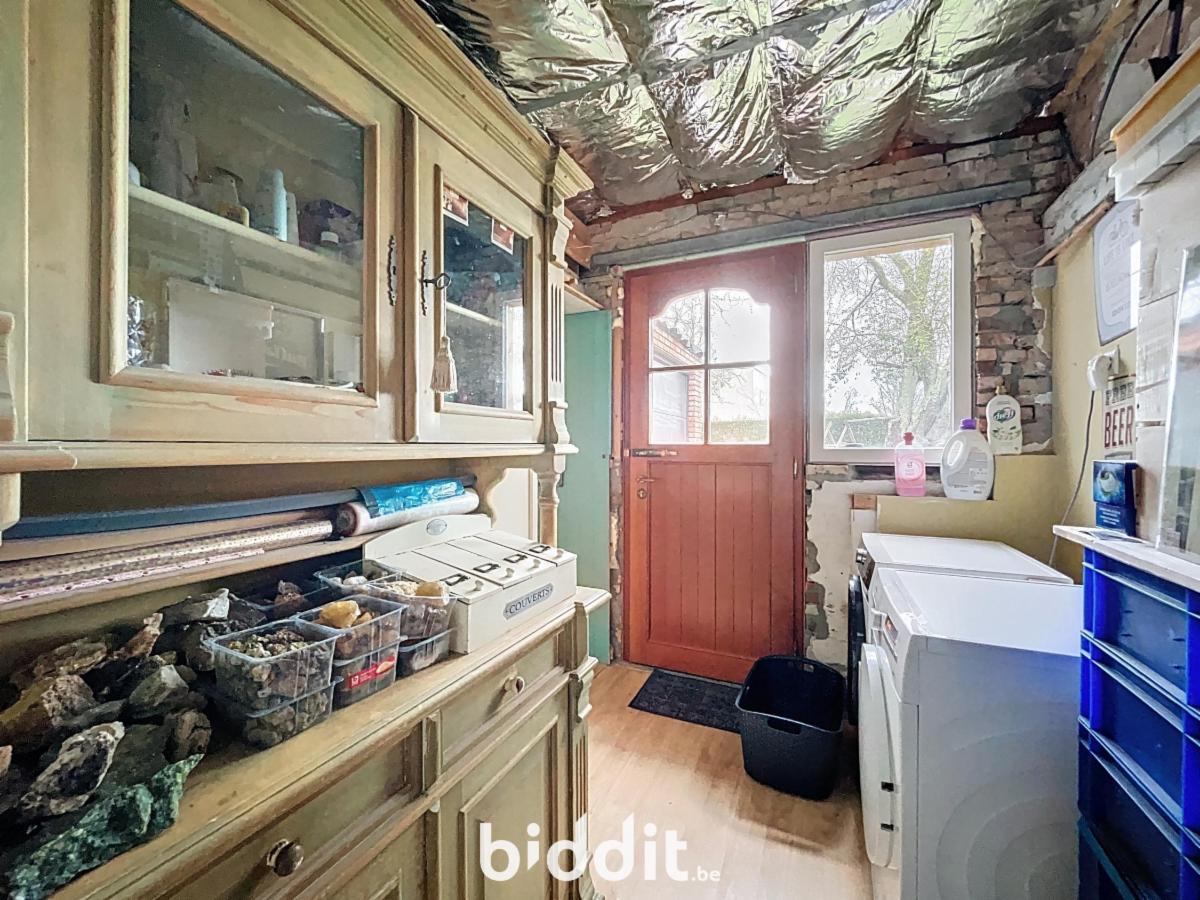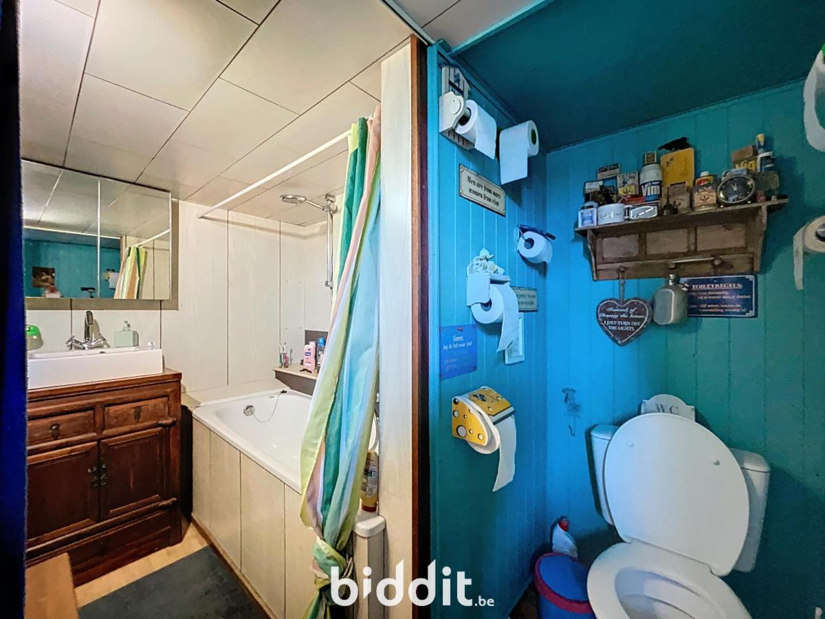 Te renoveren woning: Gelijkvloers: gang, woonplaats, keuken (ingericht nieuw, door de huurder), WC, badkamer (ligbad-lavabo); Verdiep: 3 slaapkamers, waarvan 1 ingericht als dressing (geen elektriciteit op verdieping); Zolder (thans niet toegankelijk); Oude garage (nieuwe poort). Geen comfort. G score: A P score: A