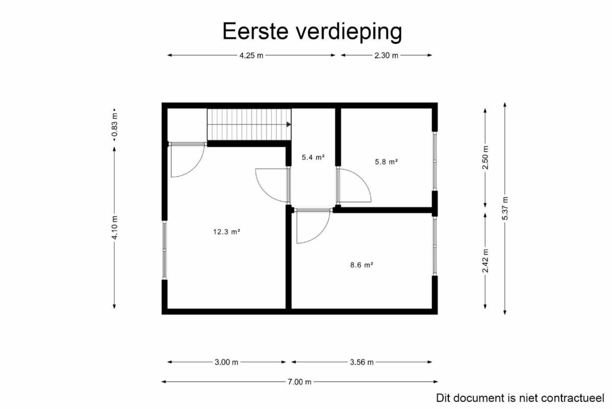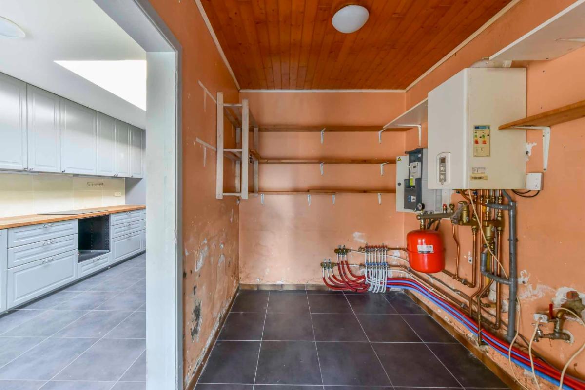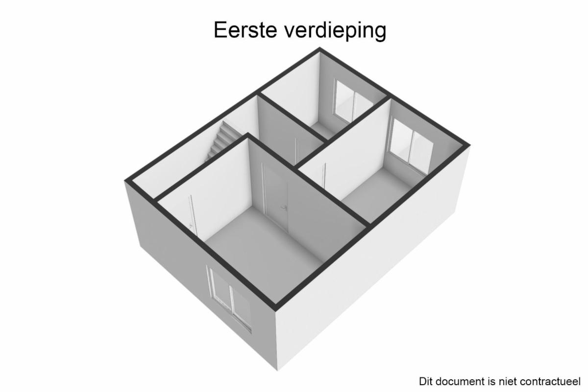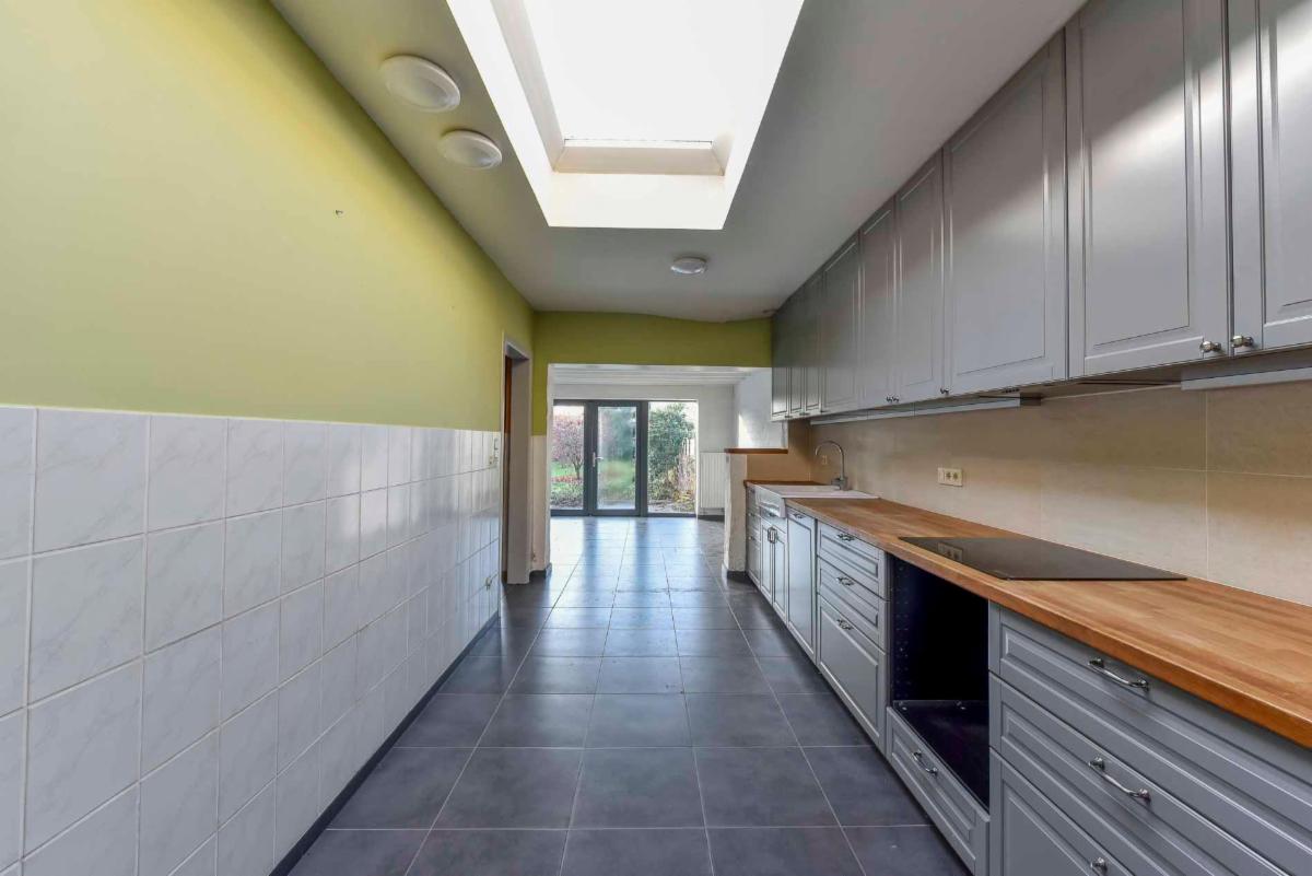 - gelijkvloers: inkomhal met trap, woonkamer, eetkamer, keuken, badkamer, aparte wc en tuin;