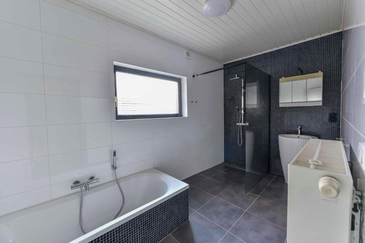 - 1e verdieping: (bereikbaar via trap): nachthal, 1 slaapkamer vooraan en 2 slaapkamers achteraan;