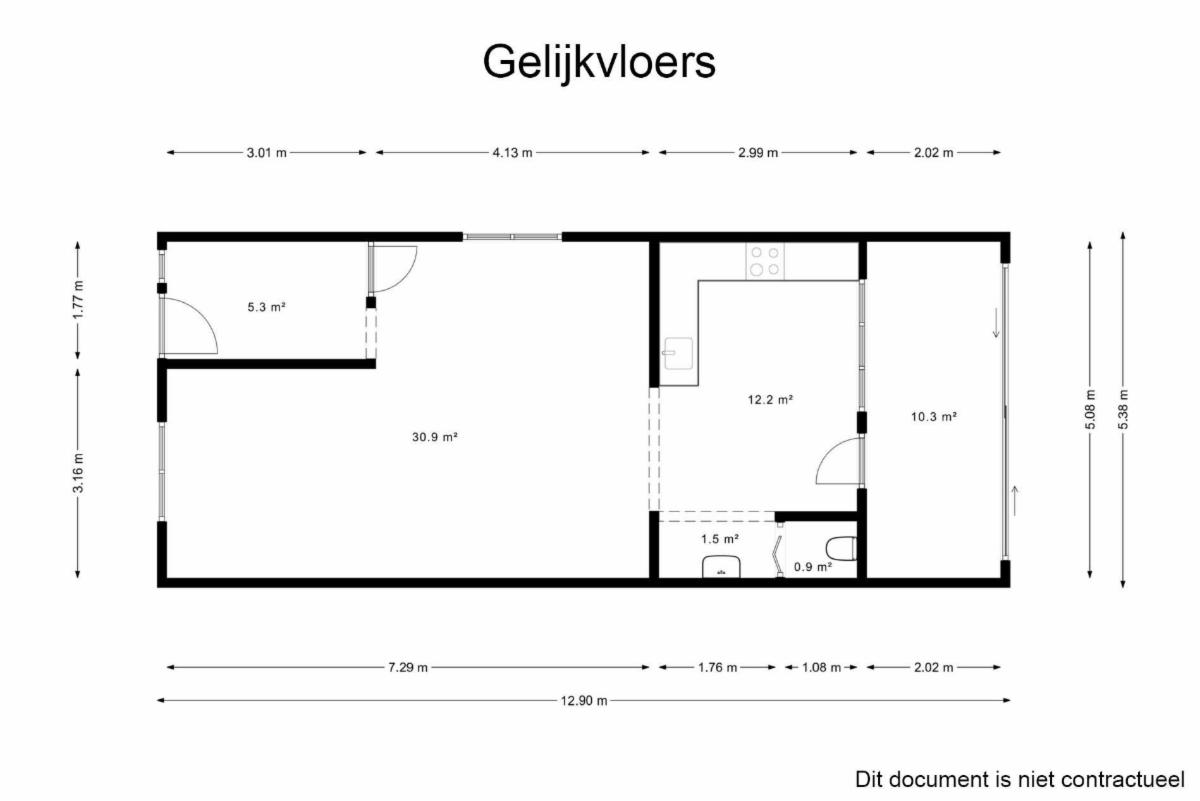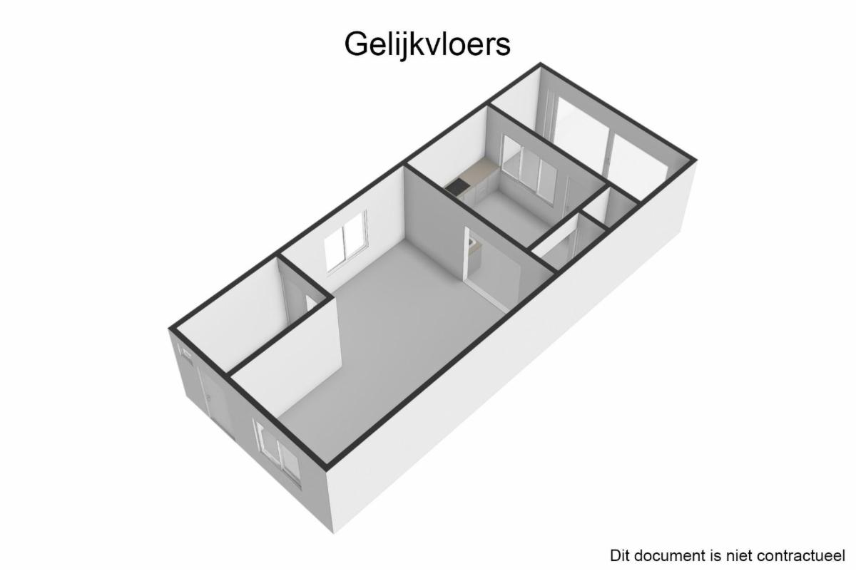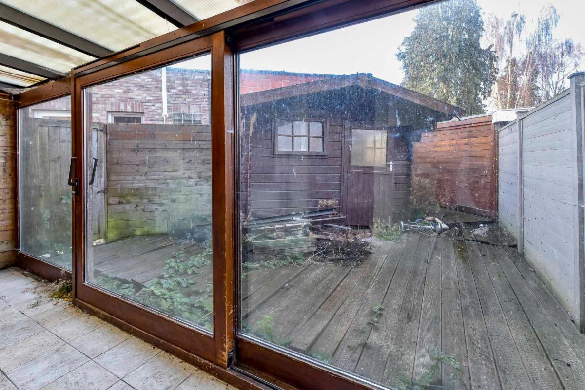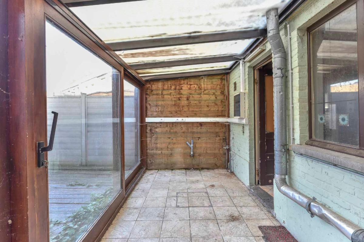 -- gelijkvloers: inkomhal met trap, woonruimte, aparte wc, veranda en tuin;