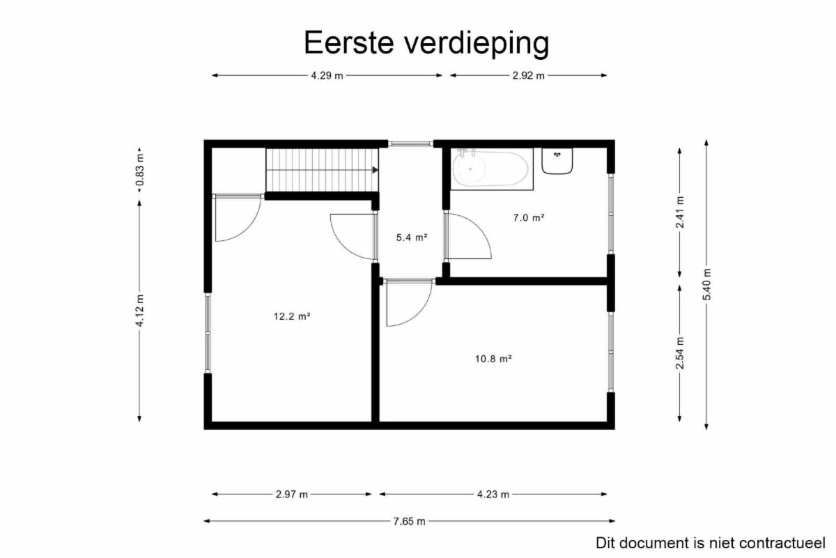 - 1e verdieping: (bereikbaar via trap): nachthal, 1 slaapkamer vooraan, badkamer en 1 slaapkamer achteraan;