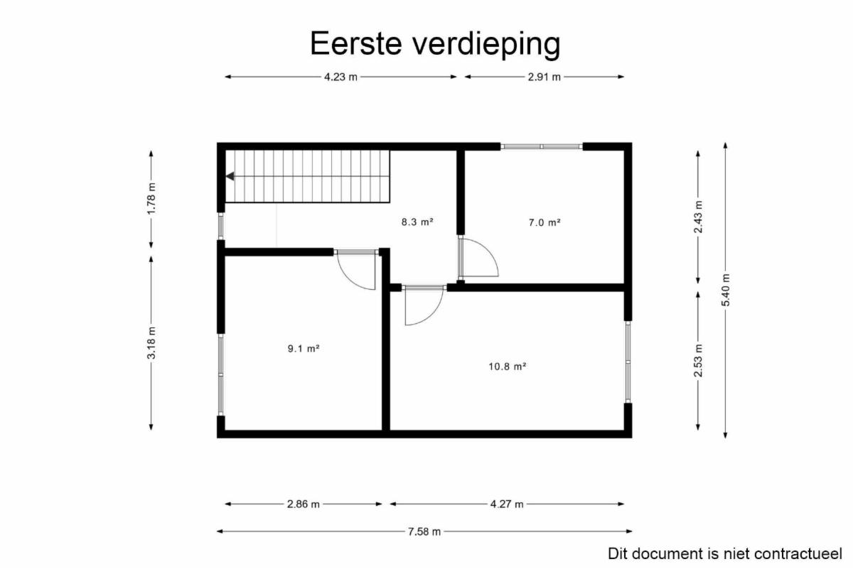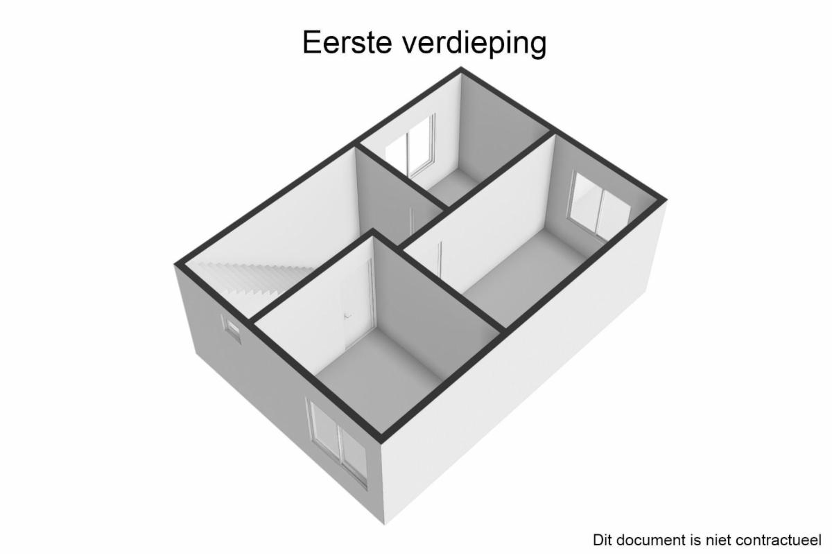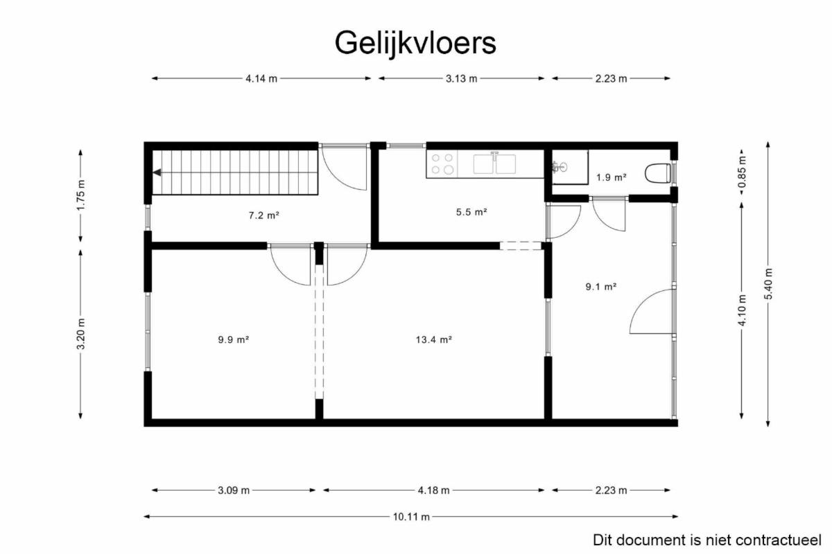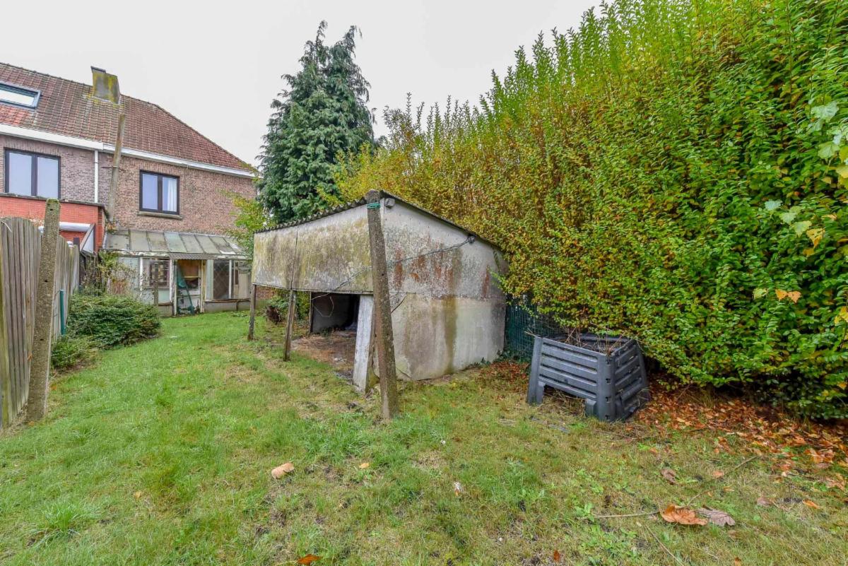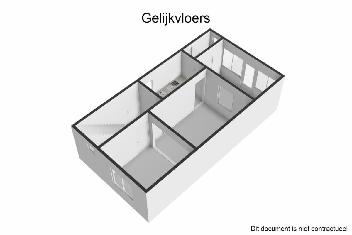 - gelijkvloers: inkomhal met trap, woonkamer/eetkamer, keuken, badkamer, veranda en tuin;