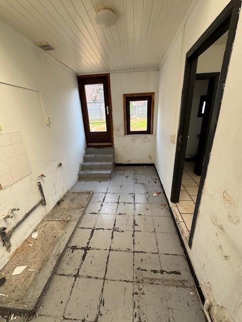 Maison d'habitation 2 façades comprenant au rez-de-chaussée : salon-salle à manger, cuisine, salle de bains, WC - Etage : 2 chambres, grenier isolé aménageable - cave au sous-sol, jardin - chauffage convecteurs gaz - châssis double vitrage