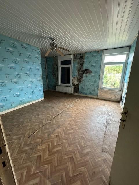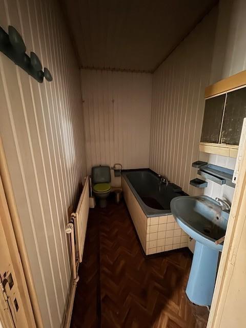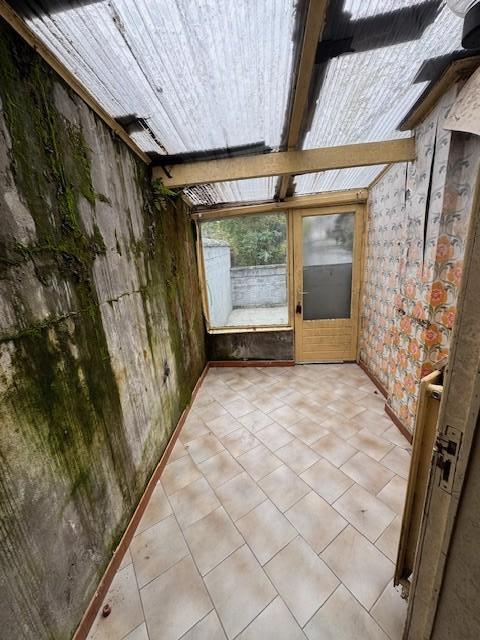 Maison 2 façades comprenant : au rez-de-chaussée : hall, WC, salon, salle à manger, cuisine, buanderie veranda; étage : 2 chambres, salle de bains avec WC, grenier partiellement aménagé - Jardin - double vitrage avant et simple vitrage à l'arrière - chauffage central gaz