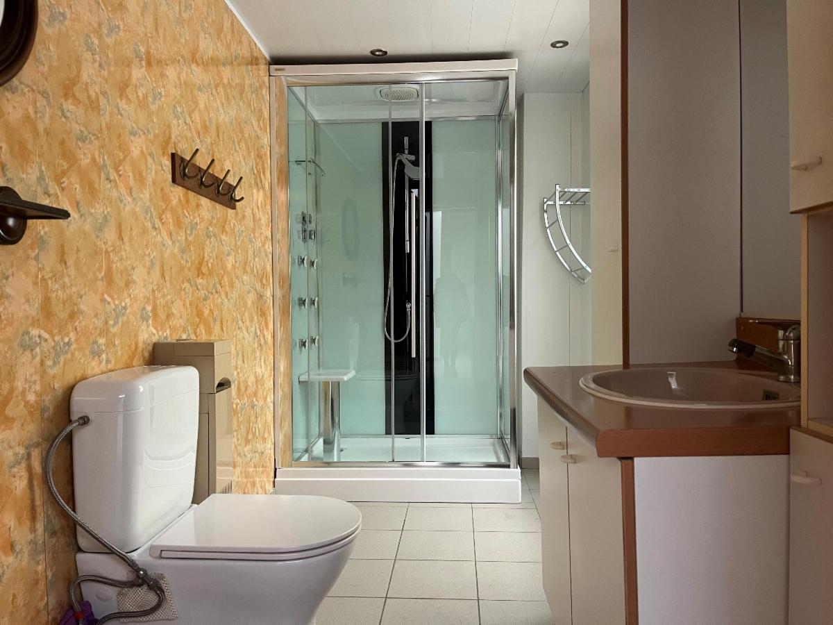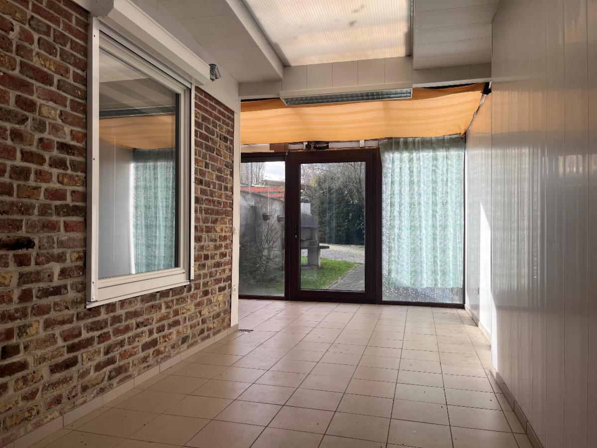 Rez-de-chaussée : un hall d'entrée, une cuisine (+/- 10,3m²), un séjour (+/- 28,3m²), une salle de douche (+/- 5,5m²), une véranda (+/- 18m²).