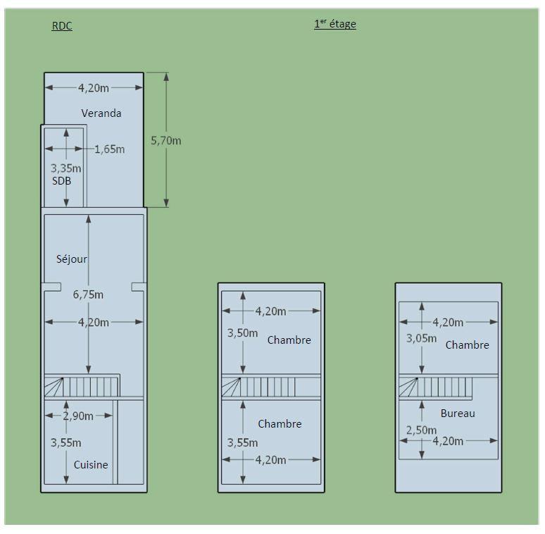 Grenier : aménagé en un bureau (+/- 10,5m²) et une chambre (+/- 12,8m²) .