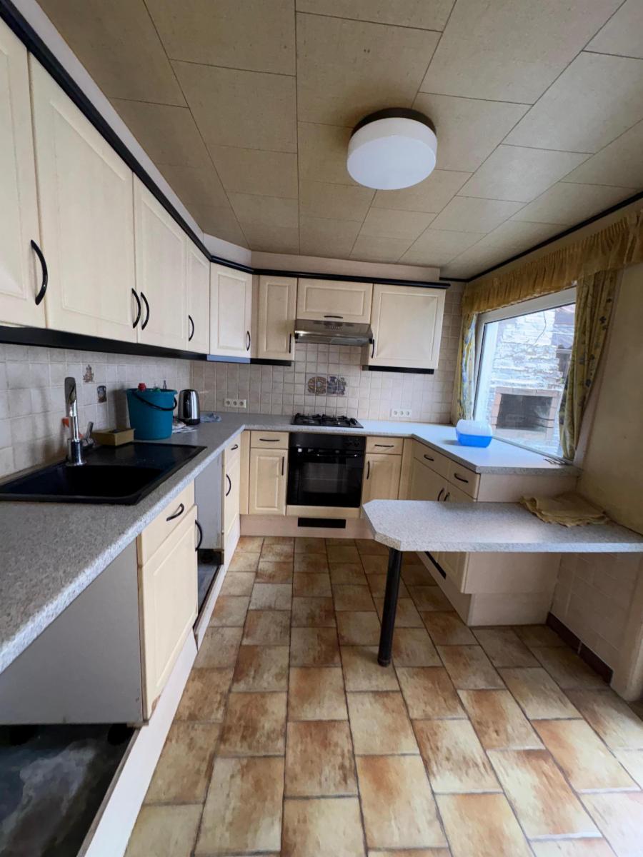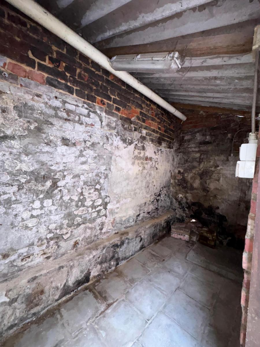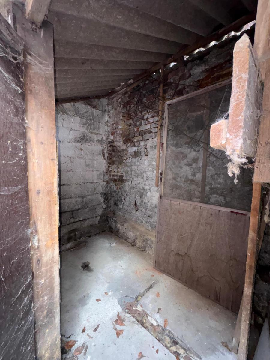 Le rez-de-chaussée se compose d’un agréable salon, d’une salle à manger équipée d’un convecteur au gaz de ville, ainsi que d’une cuisine semi-équipée comprenant taques au gaz, four, hotte et évier. À l’extérieur, une cour avec deux remises offre un espace de rangement supplémentaire, avec également un accès arrière via une servitude de passage.