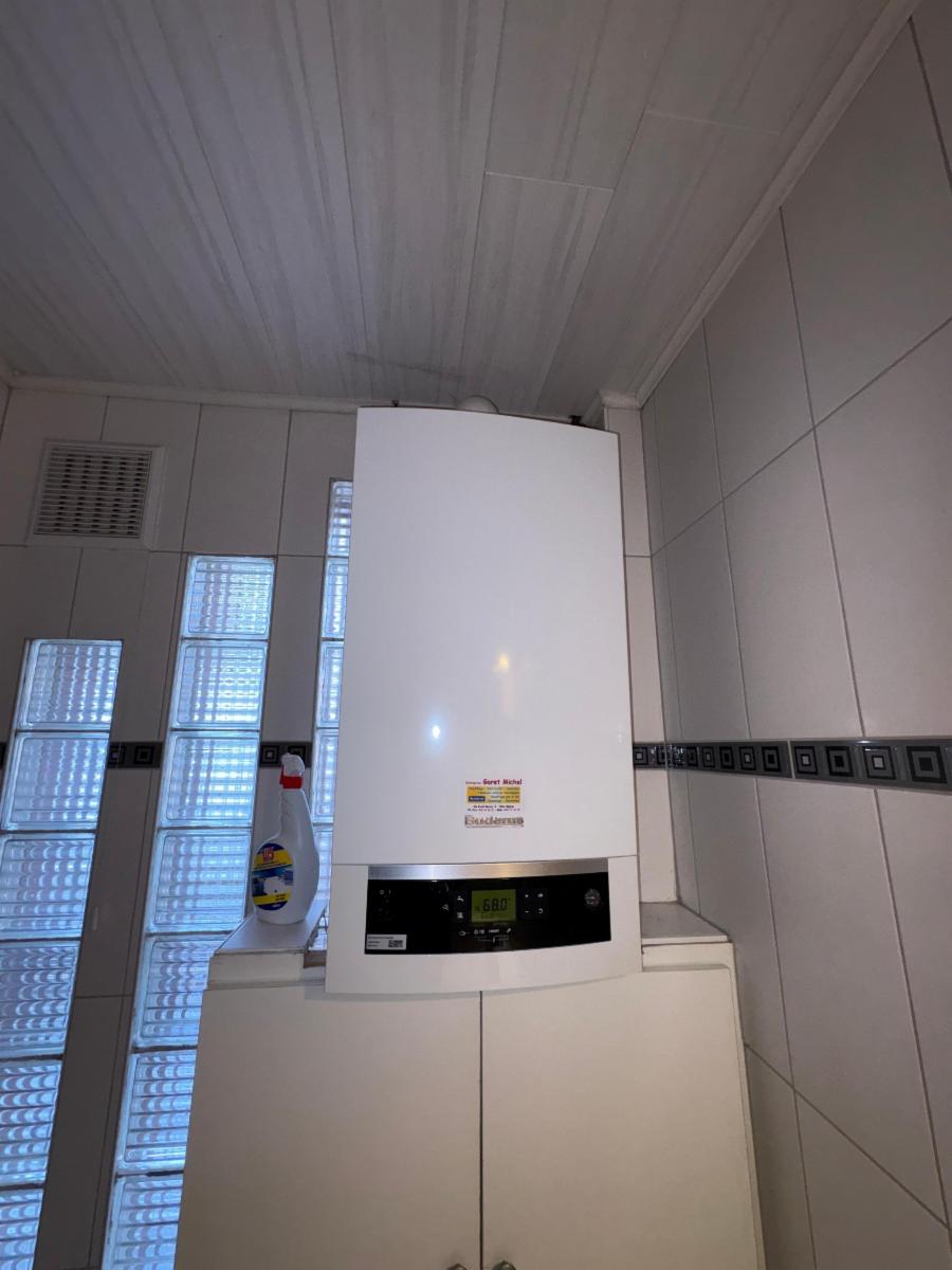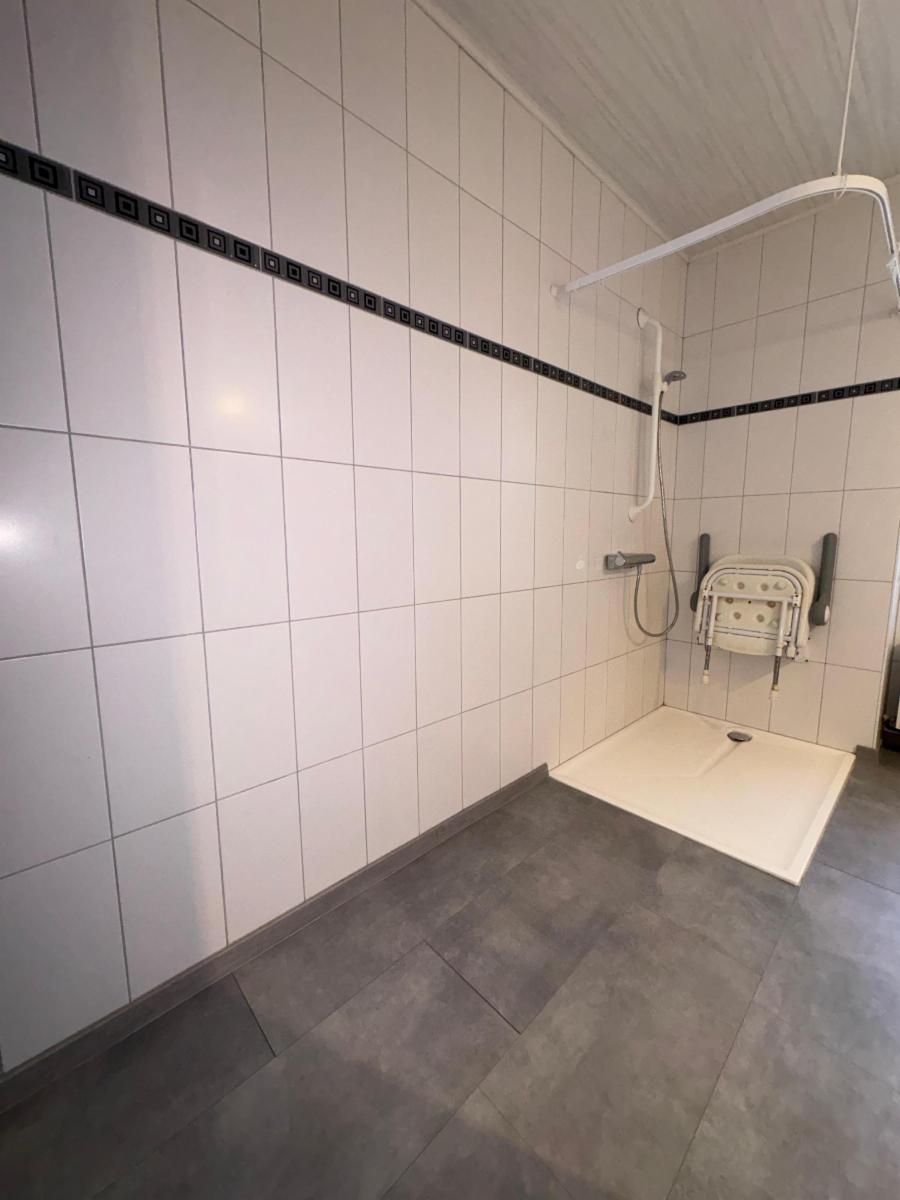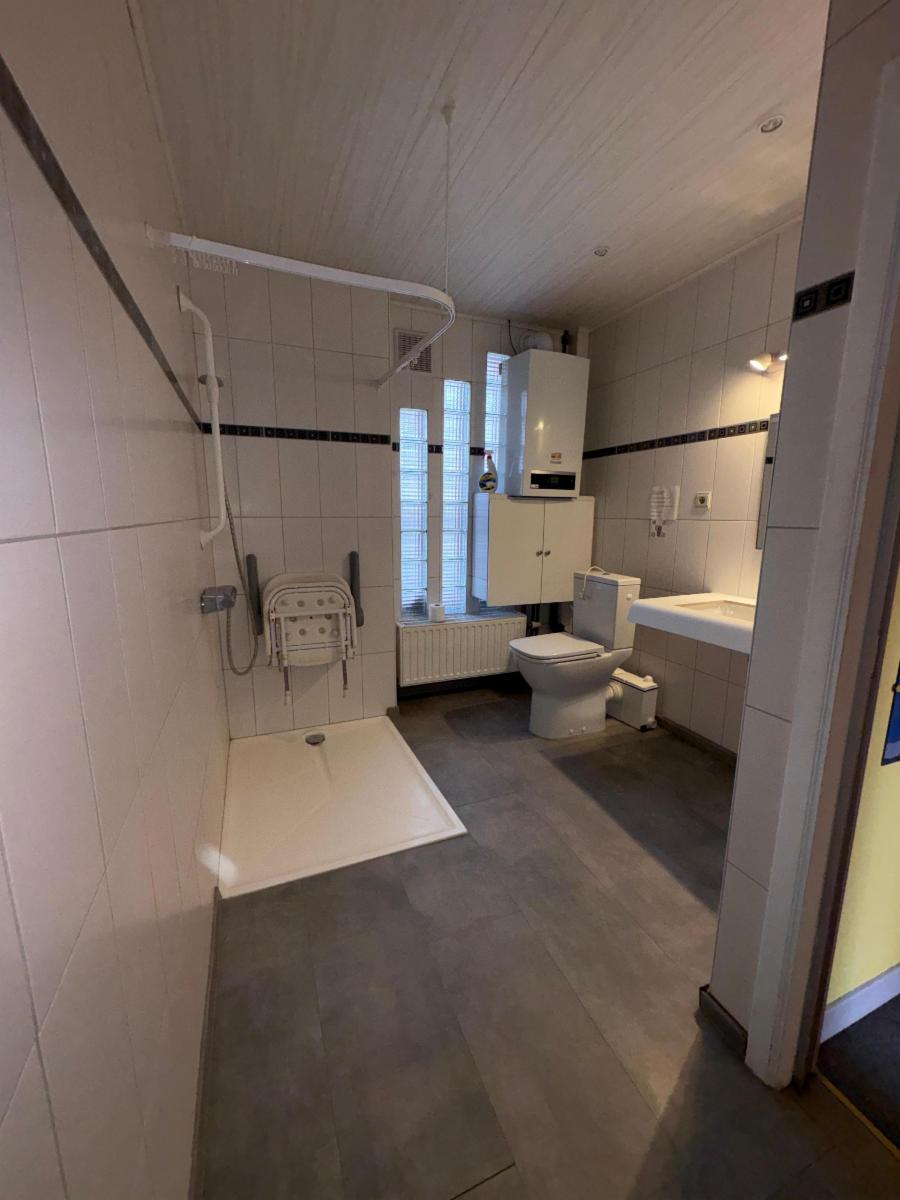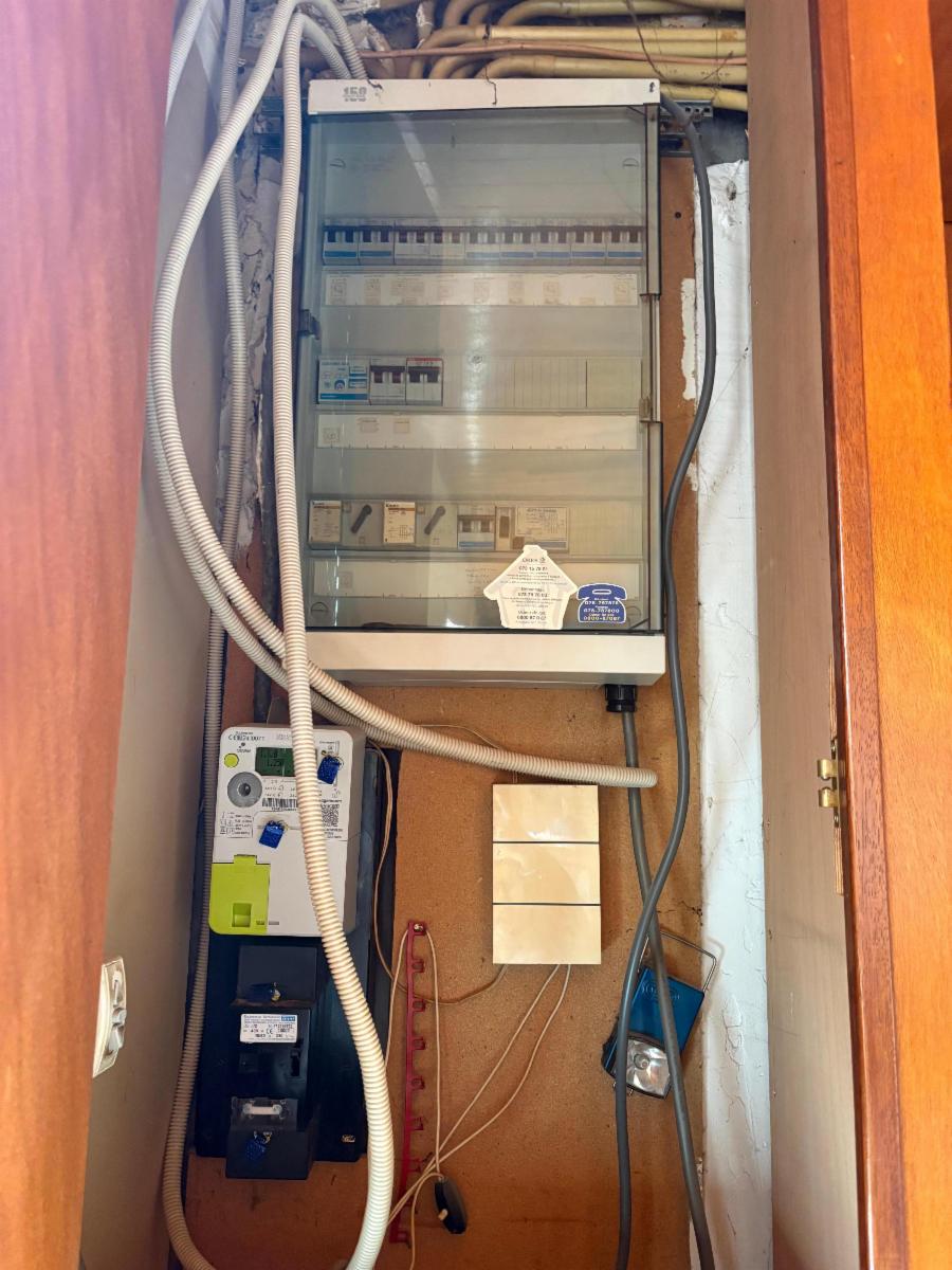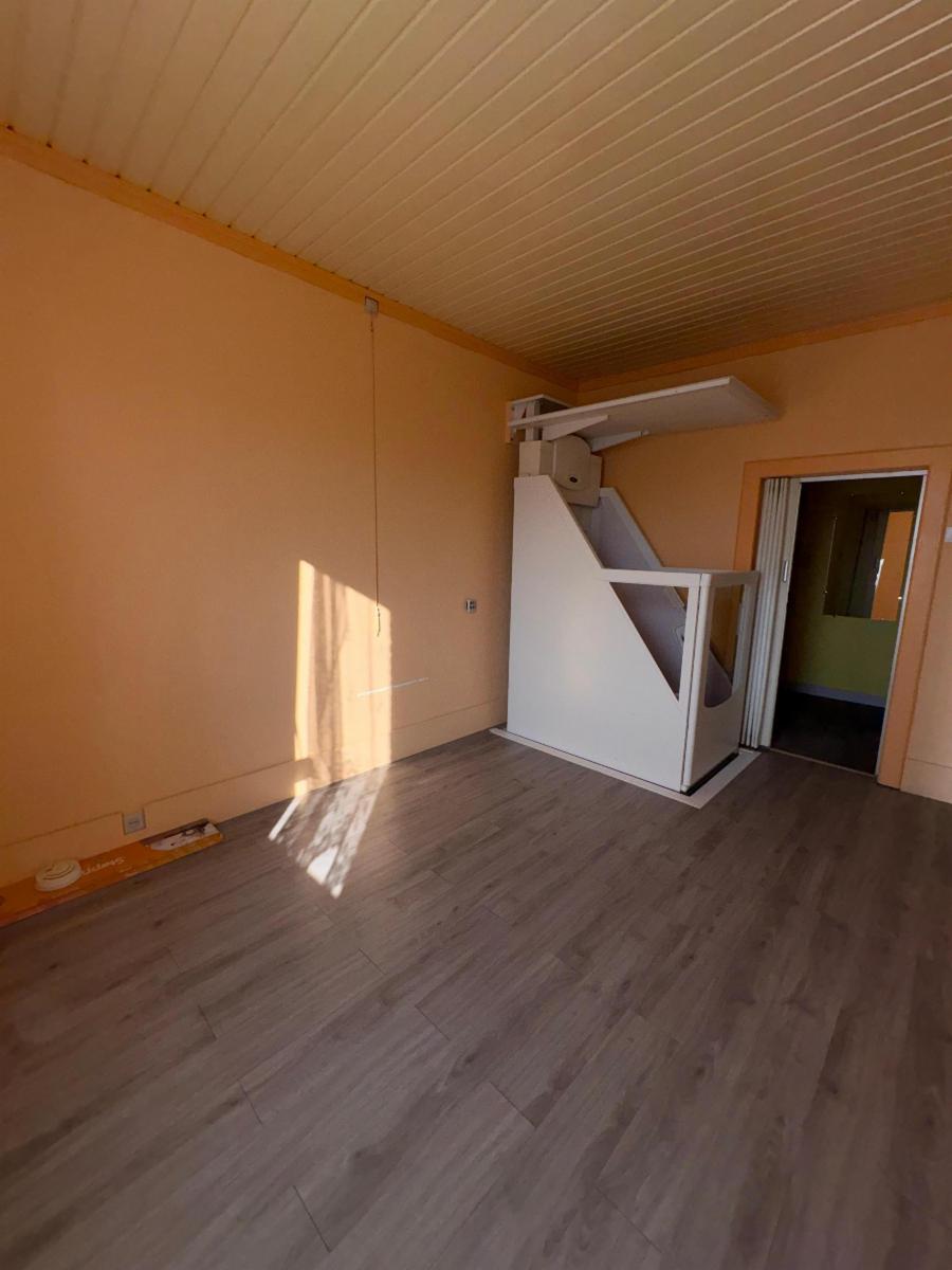 Au premier étage, le bien dispose de trois chambres, dont une équipée d’un ascenseur, ainsi qu’une salle de bains comprenant une douche à l’italienne, un WC, un lavabo et une chaudière murale assurant la production d’eau chaude et le chauffage.