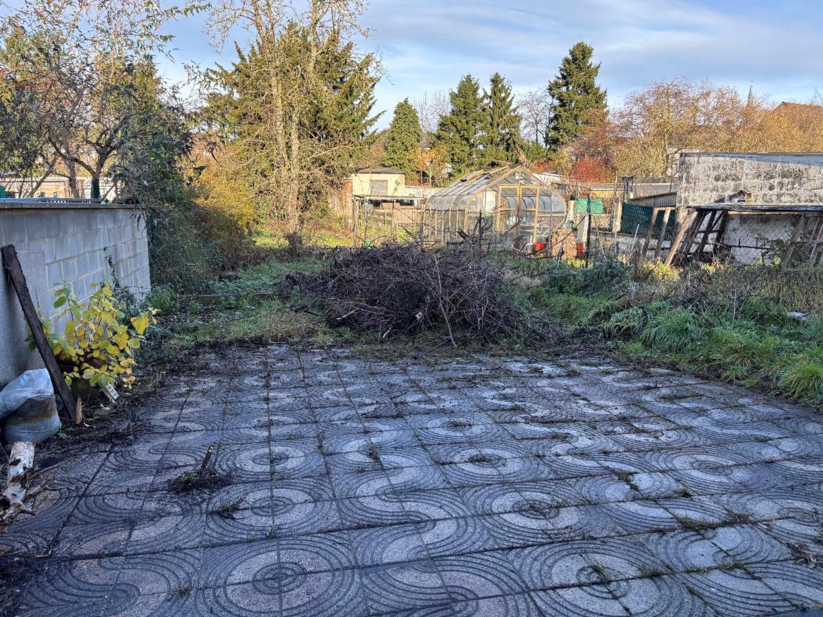 Jardin et terrasse à l’arrière avec passage latéral gauche.