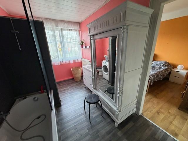 2 chambres (dont une accessible par la salle de bain), salle de bains (baignoire, évier, WC)