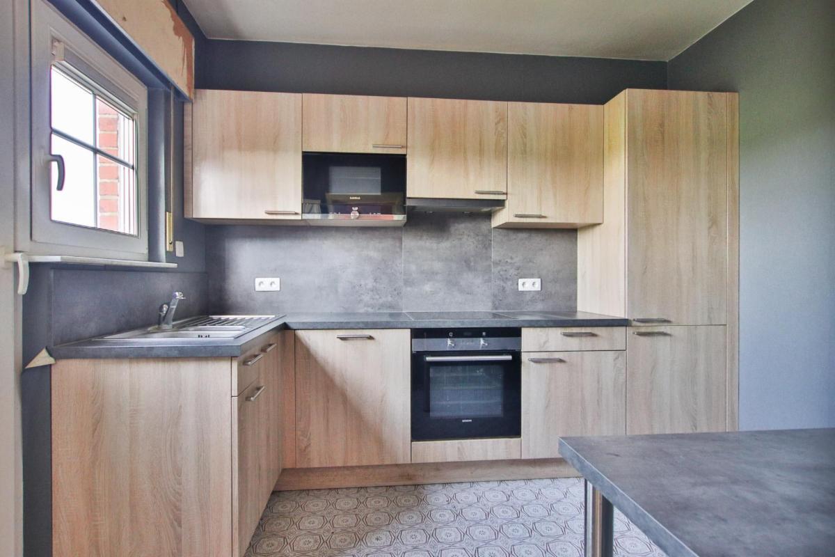 Cette maison d’habitation, d’une surface habitable de 126 m² (selon PEB), se compose comme suit : Au rez-de-chaussée (57m²): d’un hall d’entrée et d’un WC (12m²), d’une buanderie et d’un garage ; Au premier étage : d’un living lumineux (35m²), d’une cuisine équipée récente (8m²) ; Et enfin, au 2ème étage : d’une salle de bain (6m²), et de trois chambres avec placards(8 – 13 – 15m²). Ornée d’un jardin orienté à l’ouest. Equipée de châssis de fenêtres PVC doubles vitrages. Chauffage central au mazout. (PEB F – 432kWh/m².an –54274 kWh/an) (Électricité non-conforme).