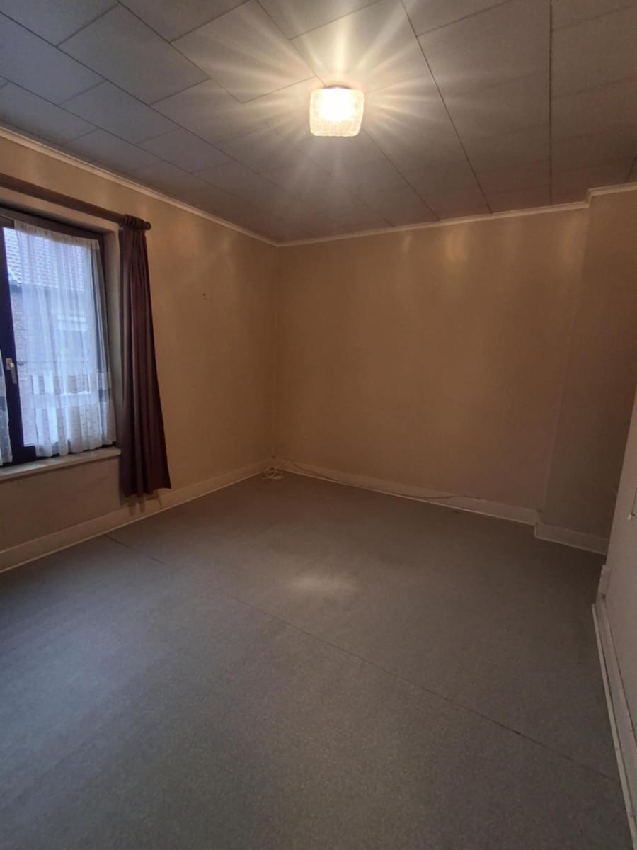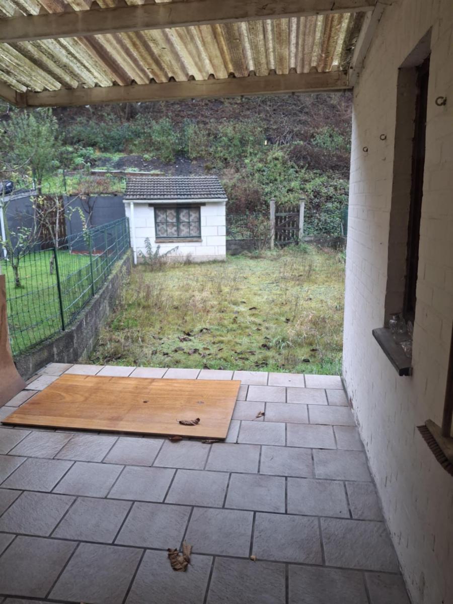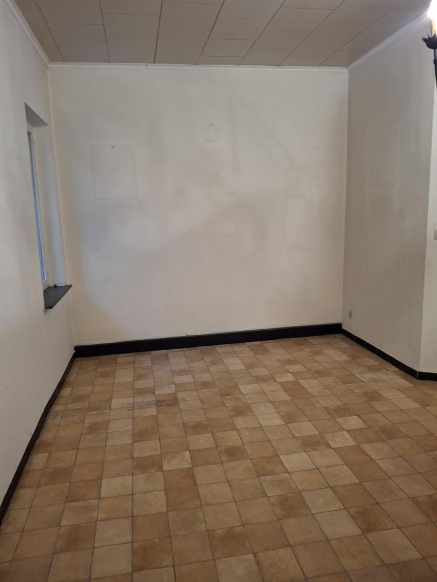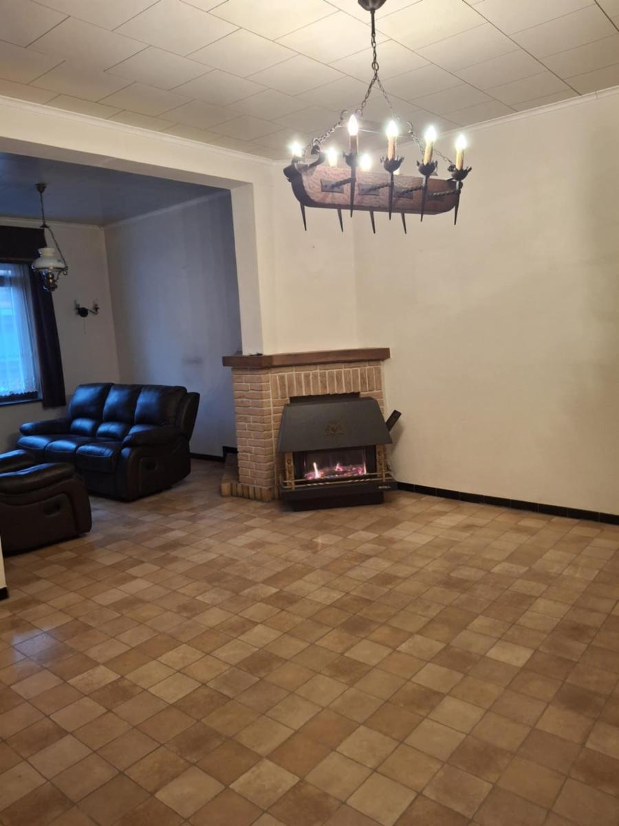 Le rez-de-chaussée se compose d’un hall d’entrée, d’un salon-salle à manger lumineux avec un poêle au gaz et une cheminée pour un feu au bois ainsi qu’une cuisine assez spacieuse mais non équipée qui donne sur le jardin clôturé et une salle de bains (avec bain, lavabo, WC et coin buanderie) .