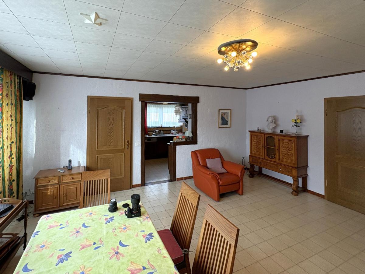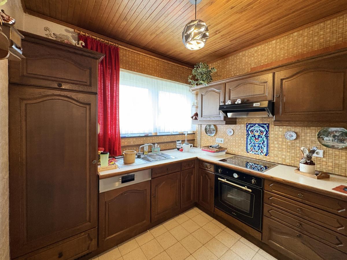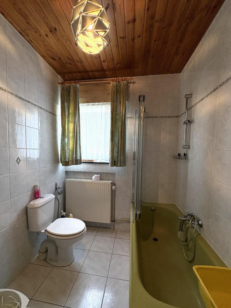 Châssis en PVC avec double vitrage, chauffage au gaz (chaudière « Viessmann » de 2023), toiture en Polytuil (1999, à isoler), sols carrelés/vinyle/parquet flottant dans les différentes pièces, compteur électrique simple horaire, volets, …