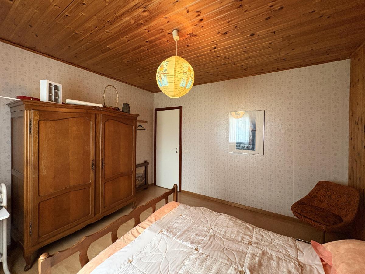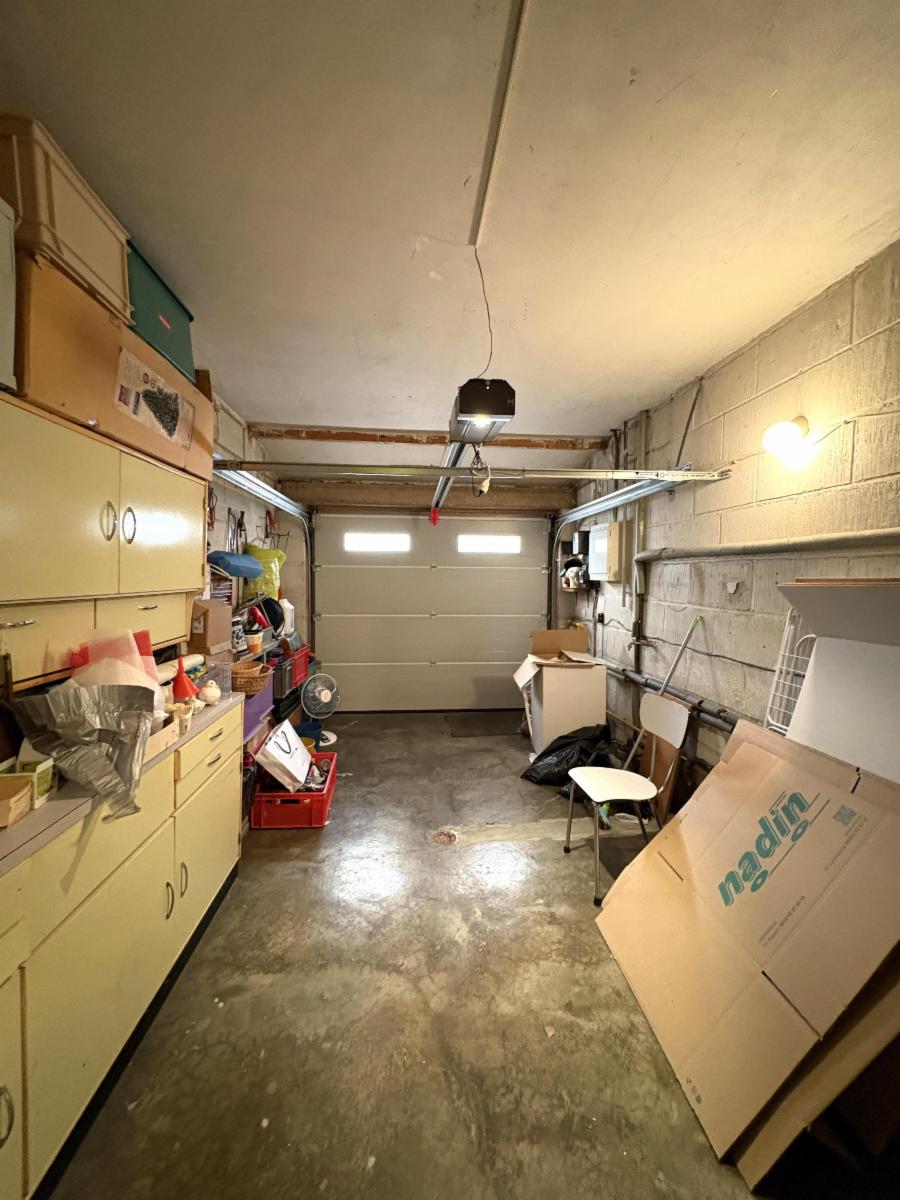 Rez-de-chaussée : hall d’entrée, séjour (salon et salle à manger) avec feu ouvert et coin cuisine semi-équipée, hall, 3 chambres, salle de bains (baignoire, lavabo et un WC), WC séparé, garage (porte sectionnelle motorisée) et une chaufferie avec coin buanderie.