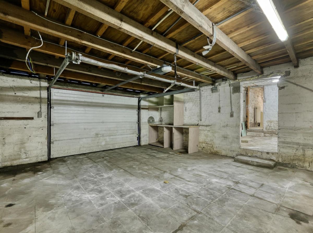 - Au rez-de-chaussée : une cuisine de 21 m², un salon/salle à manger de 27 m², une buanderie, un espace de stockage qui donne accès au jardin, une salle de bain, un espace de rangement et un garage de 28m²;