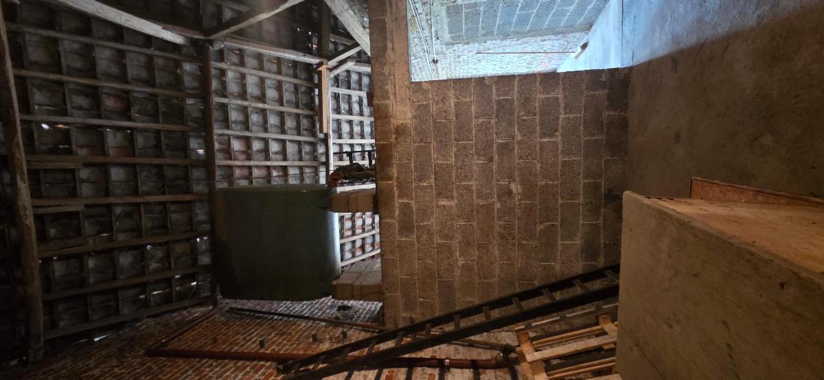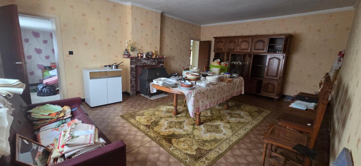 Le bien comprend deux poêles au mazout ainsi qu’une citerne d’eau desservant cuisine et sanitaires (ainsi qu’un robinet relié à l’eau de ville dans la cuisine). Le bien n’est pas raccordé à l’égout. La toiture n’est pas isolée et est composée en grande majorité de tuiles classiques (Eternit pour le surplus). Simple vitrage partout avec volets manuels.