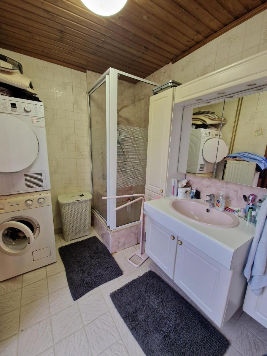 Rez-de-Chaussée : salon, salle à manger, cuisine, wc, salle de bain et garage ;