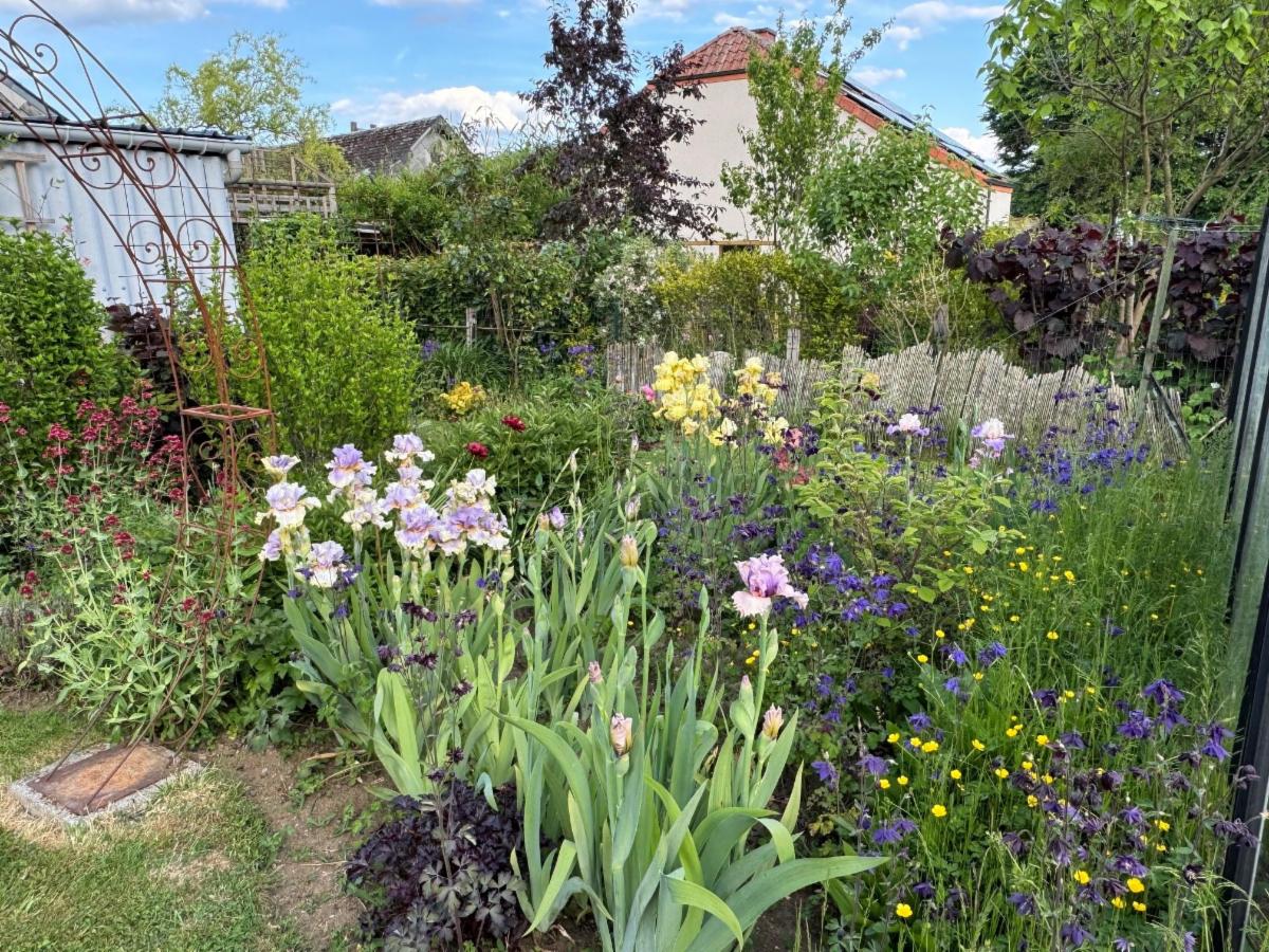 Grand jardin avec 2 abris, serre, et plan d’eau.