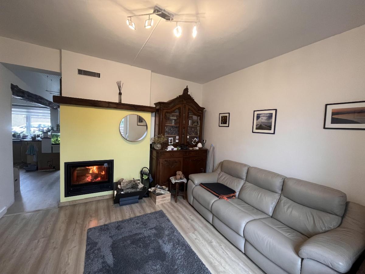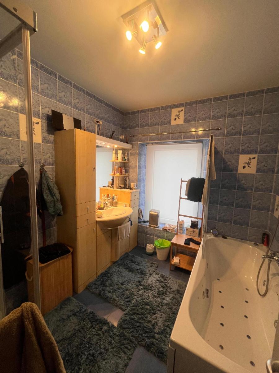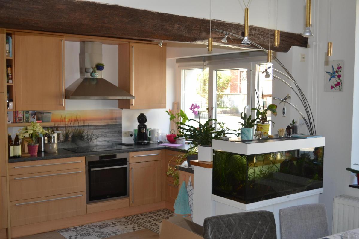 AU REZ-DE CHAUSSÉE : cuisine équipée, living, salon avec insert bois, WC, buanderie avec adoucisseur d’eau.