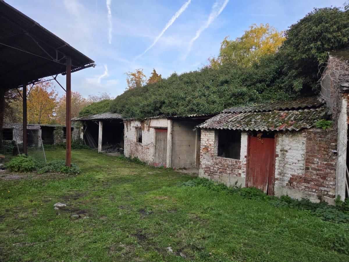 Extérieur : cinq garages avec porte basculante (valeur estimée 75.000 €), un grand garage avec porte sectionnelle électrique, une grange (avec permis périmé pour deux maisons), des remises à abattre (avec permis périmé pour cinq garages), ainsi qu’un hangar métallique.
