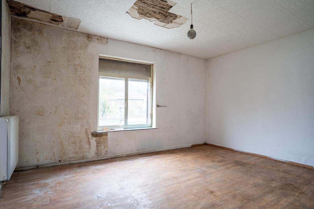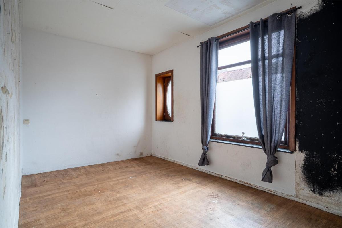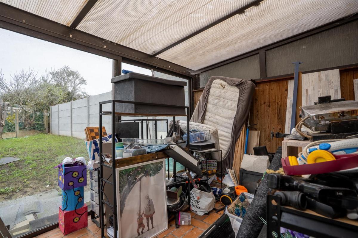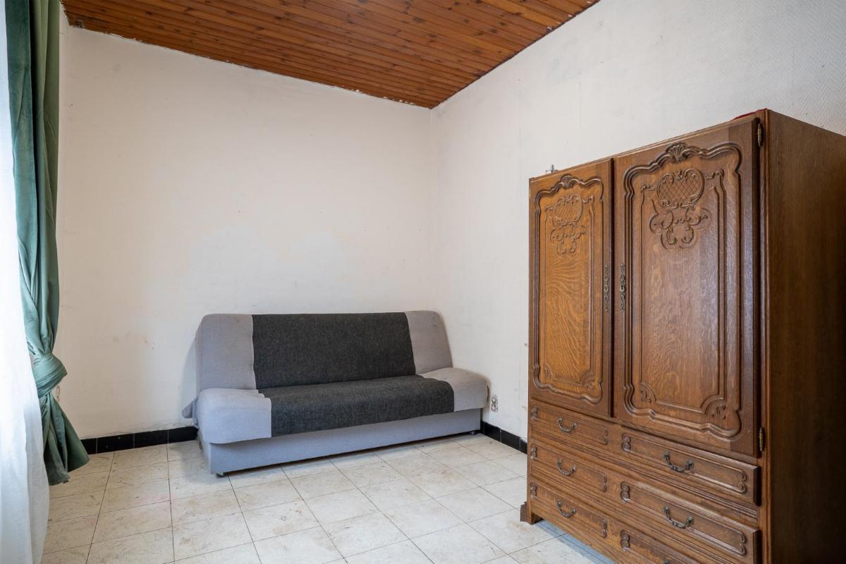 -Un rez-de-chaussée comprenant : un petit espace cuisine non équipé, un espace salle de bain (WC et lavabo), un salon avec cassette à bois, un petit couloir, une pièce pouvant servir de bureau/salon, une petite véranda.