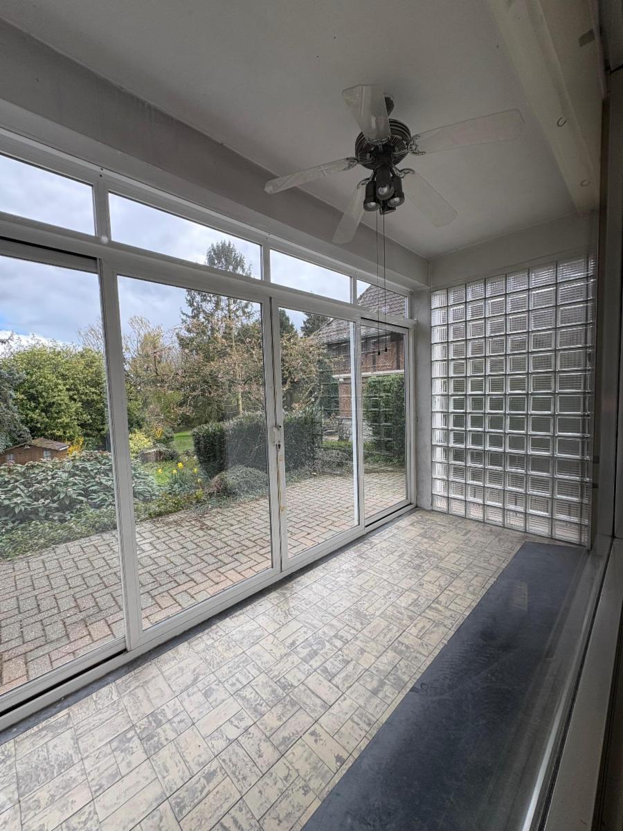 Rez-de-chaussée : hall d’entrée avec WC séparé, vaste et lumineux salon/salle à manger avec cheminée décorative, cuisine équipée, petite véranda offrant un espace de vie supplémentaire avec accès à la terrasse et au jardin