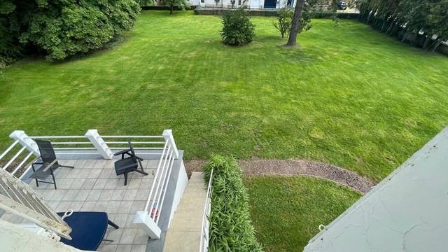 A l’arrière un jardin de plus de 1200 m2, clos par un mur qui en fait un espace idéal de loisirs.