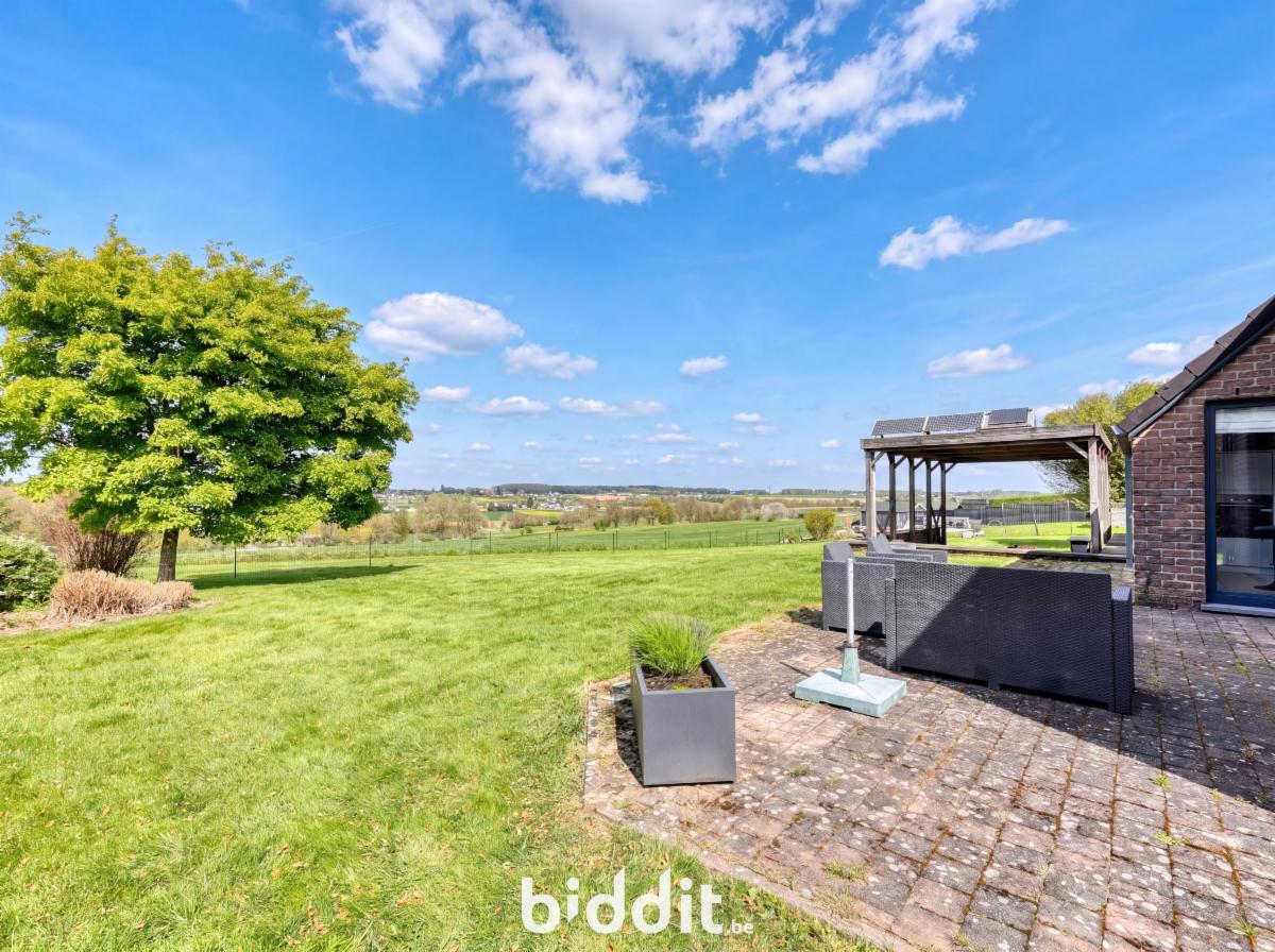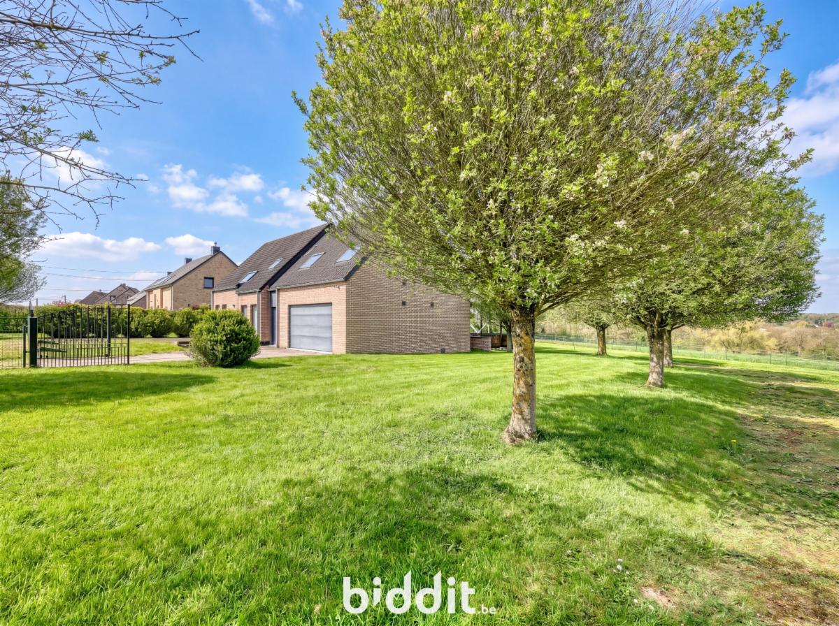 Maison 4 façades avec grand jardin située à Ohey, route de Huy 22 B d’une superficie de 16 ares 30 centiares avec deux terrasses dont l’une est couverte.