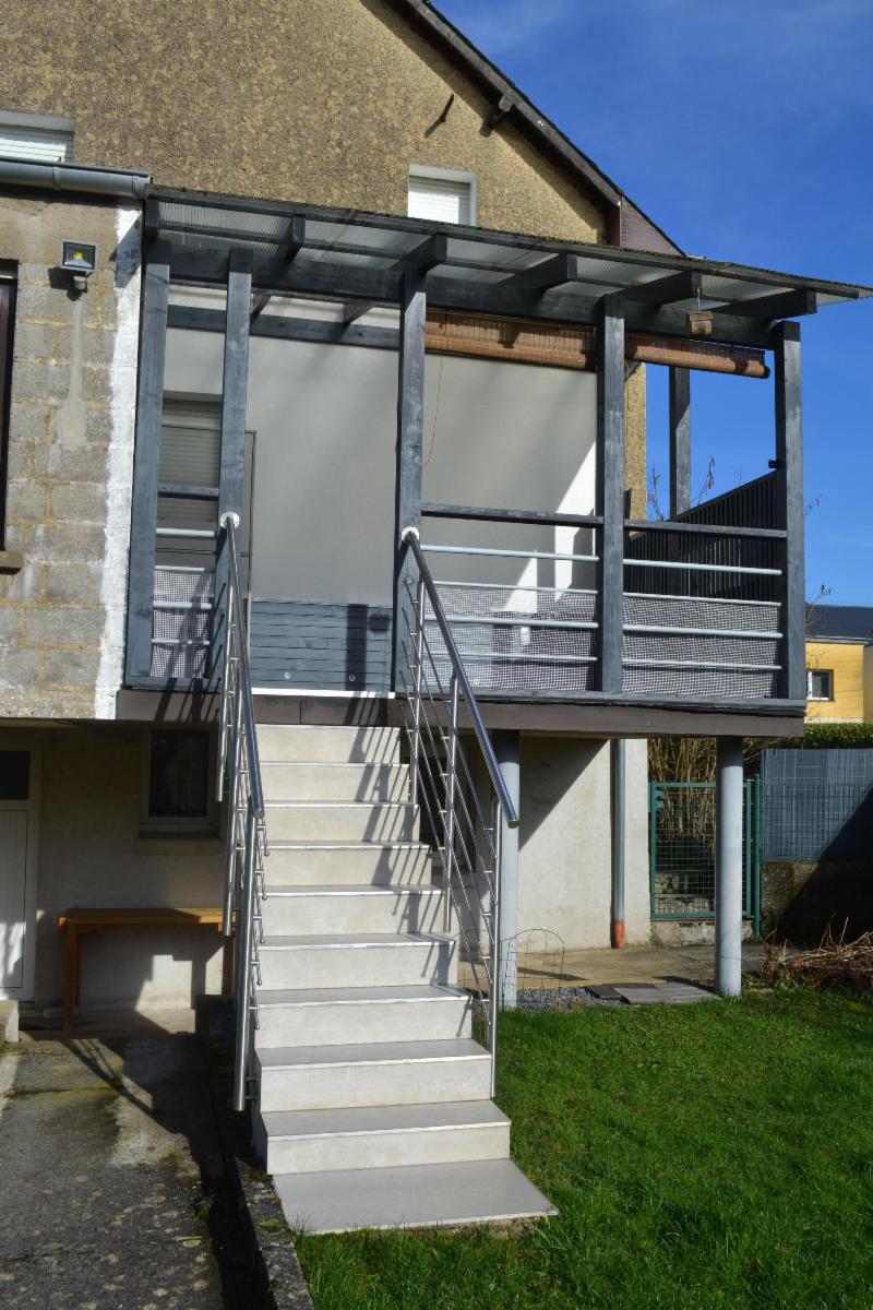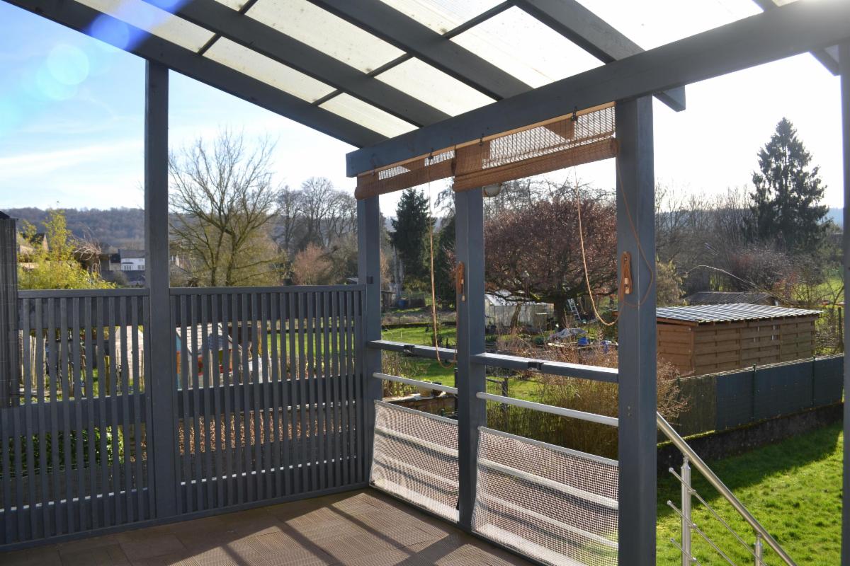 Terrasse couverte avec pergola – grand jardin avec abri.