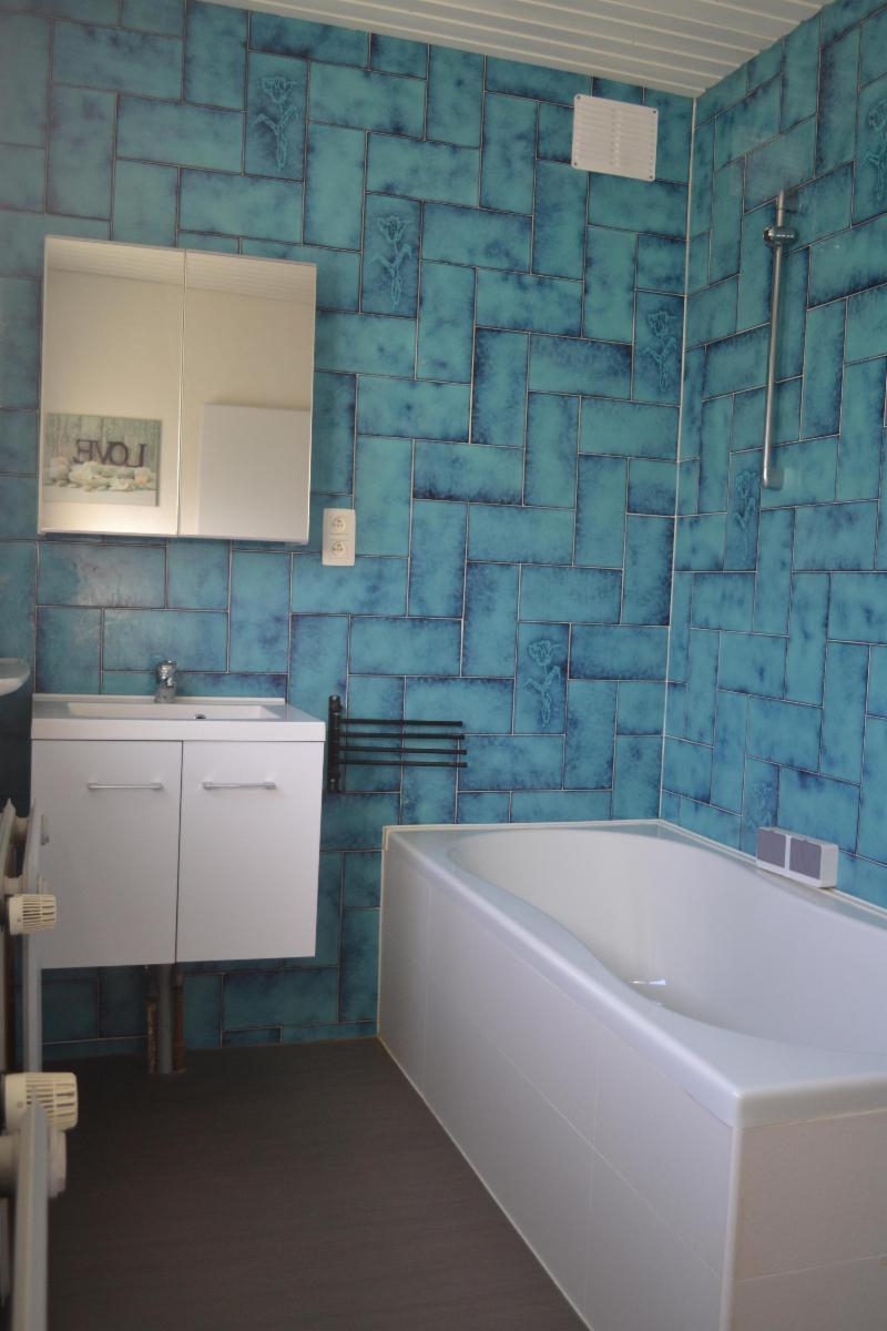 AU REZ-DE CHAUSSÉE : Hall d’entrée, salon - salle à manger avec insert bois, cuisine équipée avec cuisinière au gaz, salle de bains avec WC.