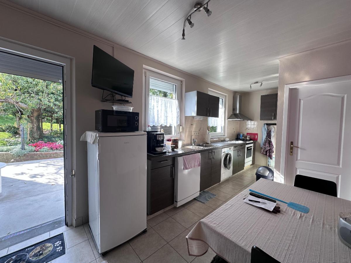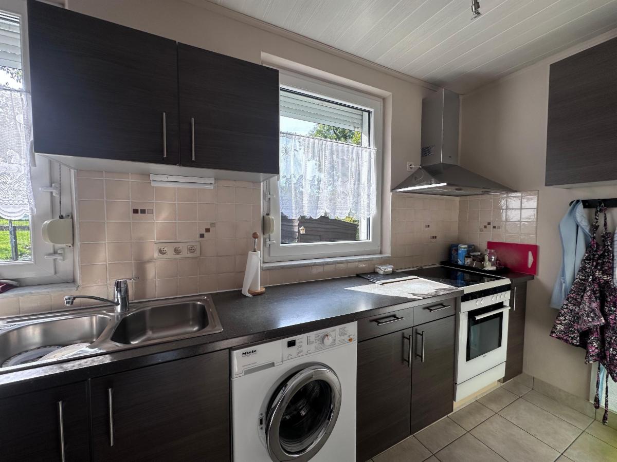 - Au rez-de-chaussée: salle à manger (18m²), salon (14m²), cuisine équipée (13m²) donnant accès à la terrasse et au jardin et WC séparé. Un grand garage (25m²) donnant accès au jardin complète le rez-de-chaussée.