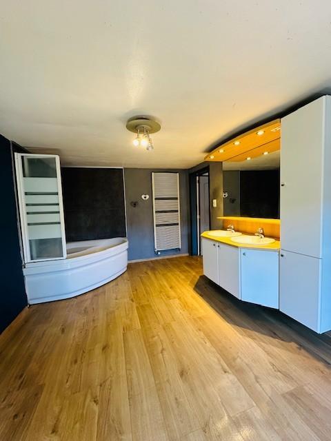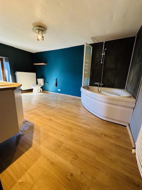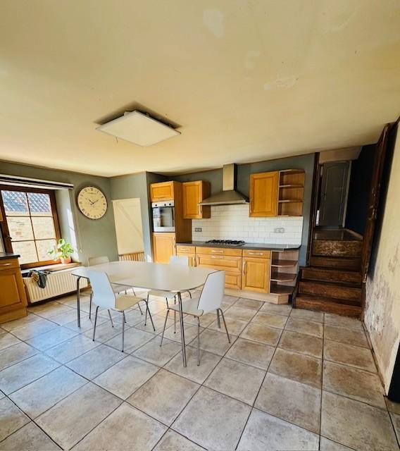 Elle se compose : Au rez-de-chaussée : un hall , un wc, un grand salon avec poêle a pellet/bois, cuisine équipée (four, taque gaz, lave-vaisselle et hotte), grande pièce pour profession libérale avec accès indépendant.