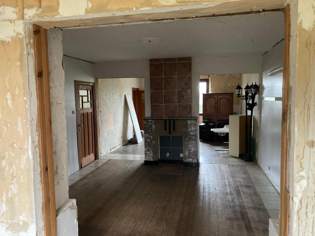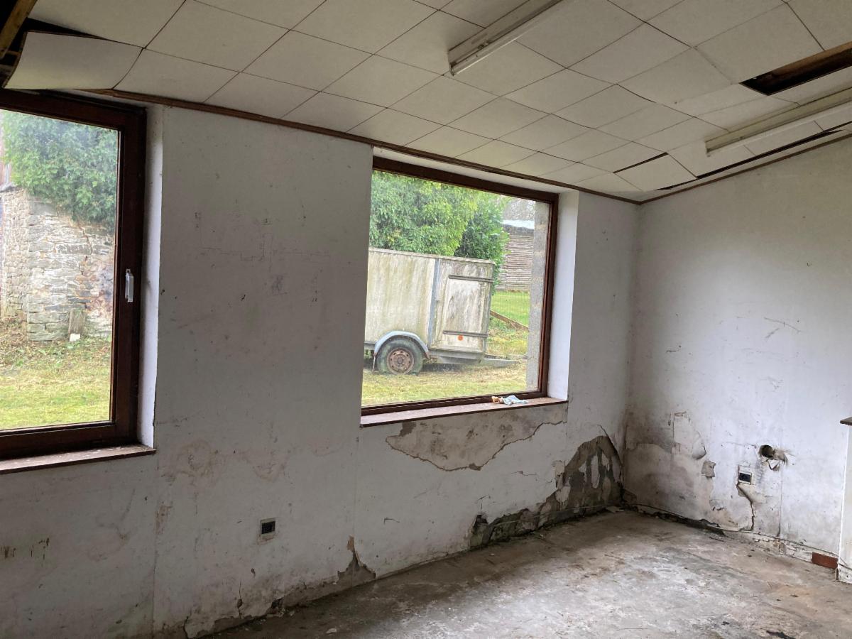 Maison d'habitation à restaurer mitoyenne 3 façades "rue Sur la Champagne 5", cadastrée Commune de BASTOGNE 7ème division Bertogne (82005) section B n° 1456HP0000, année 1850-1874, RC 637€, sur et avec terrain de ± 12a 38ca (voir plan avec options A-B-C), comprenant : rez : hall/couloir, 4 pièces, cuisine, wc ; étage 1 (plancher) : hall de nuit/couloir, 3 chambres, salle de bain ; étage 2 (plancher) : vastes greniers aménageables ; sous-sol : cave terre battue sous la moitié du bâtiment. Equipements : PEB G, toiture non isolée éternits, châssis bois double vitrage, égouts. Extérieur : jardin, hangar (1/3 pierres avec fosse, 2/3 bois & tôles). Options suivant offre(s) respective(s) supplémentaire(s) : A) ± 04a 75ca partie (solde) du 1456HP0000 ; B) ± 02a 31ca partie du 1457GP0000 ; C) ± 01a 82ca partie (solde) du 1457GP0000. Vente sous régime des droits d'enregistrement. Le prix annoncé est une base de négociation n'engageant pas le vendeur. Les informations sont fournies à titre indicatif et non contractuel.