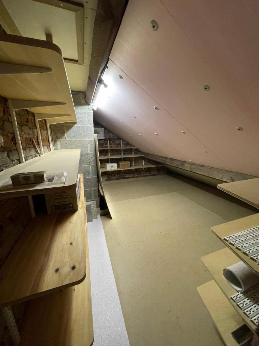• Etage mansardé sur plancher: salle de bains avec baignoire, douche et wc, 2e chambre mansarde pour du rangement.
