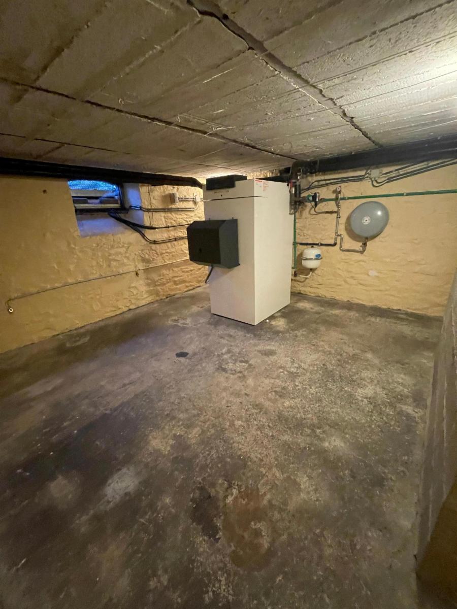 • Bel étage : hall d’entrée carrelé, cuisine équipée à remettre au goût du jour, salle de bains avec wc, douche, lavabo et coin buanderie donnant accès au jardin, salle à manger, vaste living de +-40 m², véranda carrelée avec accès indépendant, salle de repassage carrelée avec accès indépendant vers le jardin arrière et 1ère chambre.