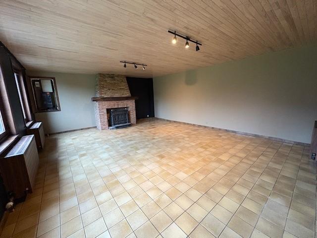 REZ : hall d’entrée, grand living avec cheminée poêle bois (38m²), cuisine meublée, buanderie, chaufferie/douche et wc séparé, garage