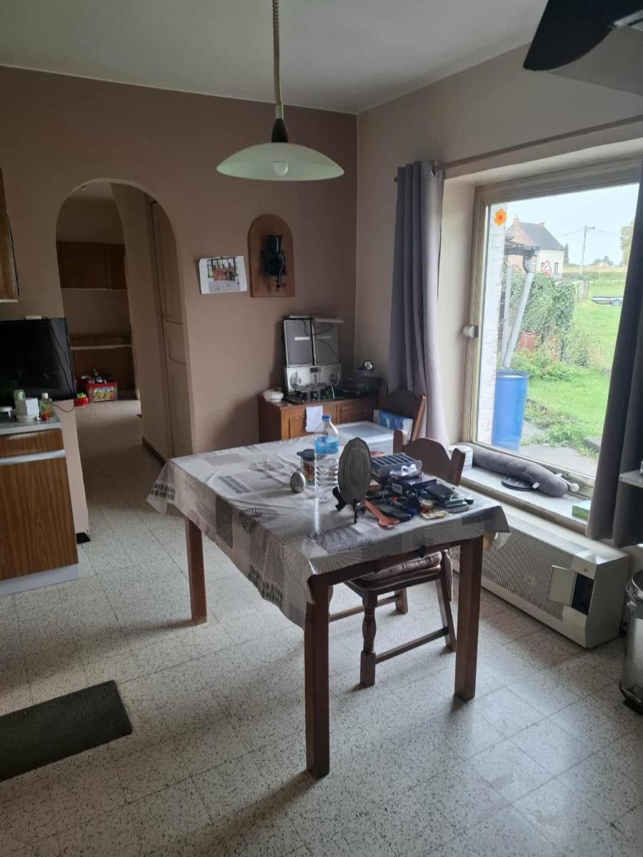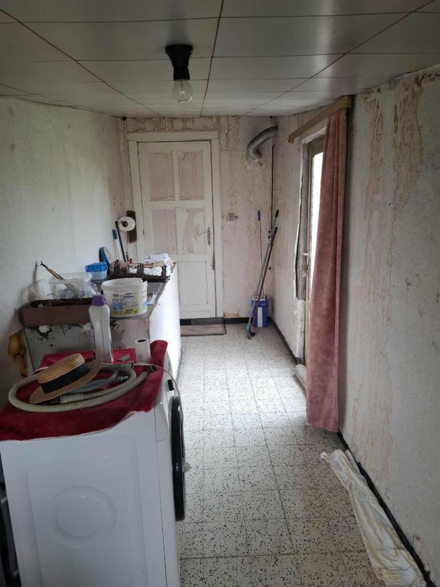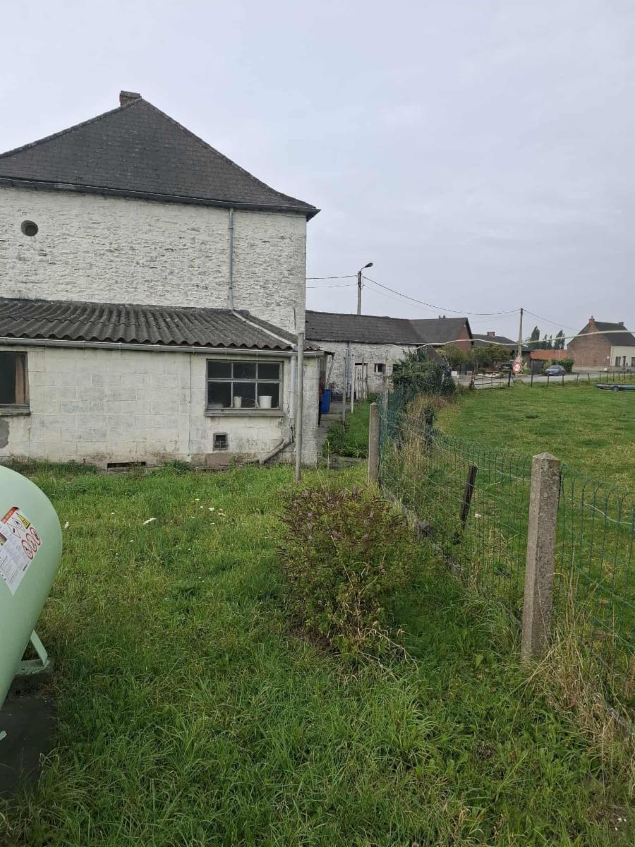 Maison comprenant cave, living lumineux, cuisine, arrière-cuisine, véranda (à refaire complètement), sdb, buanderie, dépendances, garage, jardin - Etage: 3 chambres spacieuses, grenier aménageable, double vitrage partiel, foyers gaz (cuve aérienne).